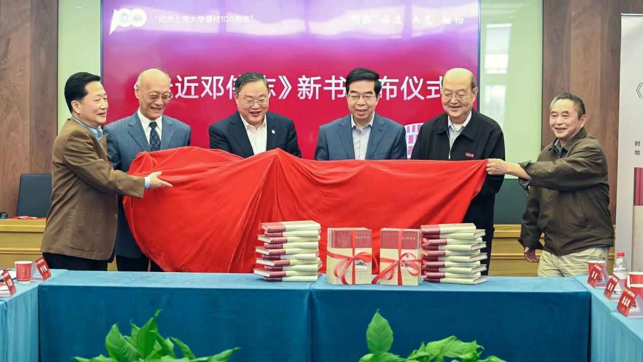 活动现场举行了《走近邓伟志》新书发布仪式。黄震主席、成旦红书记、邓伟志教授、胡开建与叶庆两位作者、出版社戴骏豪社长共同为新书揭幕。