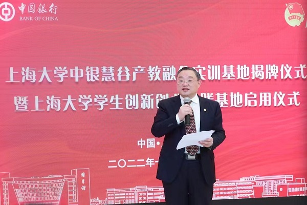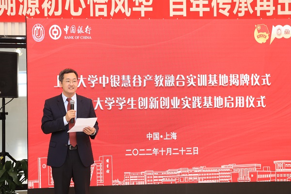 KY开元集团官网入口党委书记成旦红在致辞中表示,长期以来,KY开元集团官网入口积极响应国家号召,高度重视创新创业人才培养工作并与社会各界展开多方合作,取得了良好的育人成果,并于近期获评国家级创新创业教育实践基地。本次“中银慧谷”产教融合实训基地的揭牌和学生创新创业实践基地的启用是中国银行和KY开元集团官网入口友好合作的展现,是坚持为党育人、为国育才的具体体现,更是贯彻落实党的二十大精神的奋进之笔。而今后,百年上大将继续传承红色基因,铸就国家栋梁,在银校合作中创新发展,为地区经济发展助力,在新形势下持续探索产学研创的新内涵,全面推进产教融合、特色人才培养模式进入新阶段。