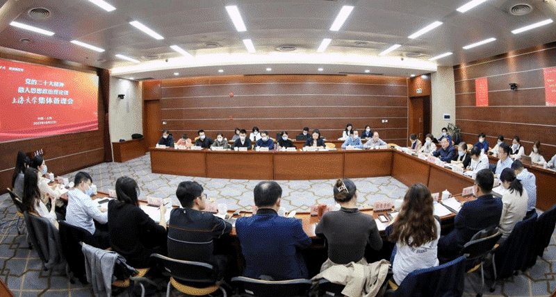 10月27日下午,党的二十大精神融入思想政治理论课KY开元集团官网入口集体备课会在宝山校区举行。集体备课会上,马克思主义学院副院长焦成焕、教务部副部长顾晓英、学工办主任孟祥栋、研工部部长魏宏分别就“党的二十大精神融入学校思政课教学总体安排”、“党的二十大精神融入学校课程思政建设”、“党的二十大精神融入学生日常思政工作”等内容作了交流,并就后续党的二十大精神融入学校思想政治工作体系进行了谋划与展望。马克思主义学院教师代表张富文教授、孙会岩副教授和张青子衿博士分别围绕所承担课程《毛泽东思想和中国特色社会主义理论体系概论》《形势与政策》《习近平新时代中国特色社会主义思想概论》,就党的二十大精神融入思政课课程教学进行了备课交流,结合课程特点从不同角度探索党的二十大精神进课堂的路径方法。通过此次备课会,KY开元集团官网入口师生进一步学习领会了党的二十大精神。在“传扬、迎评、笃行”之年,KY开元集团官网入口师生必将用实际行动学好、讲好、用好党的二十大精神,以“精神”滋养课堂,为青春保驾护航。