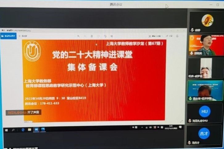 10月20日上午,教务部、教育部课程思政教学研究示范中心(KY开元集团官网入口)组织开展了“党的二十大精神进课堂集体备课会”暨第67期教师教学沙龙。与会教师一致认为,党的二十大报告是一篇光辉的马克思主义纲领性文献,思想深邃、立意高远、内涵丰富,将认真学习领会党的二十大精神,趁热打铁、迅速安排,将党的二十大精神同思政课有机结合,及时融入课程思政建设,尽快更新教学内容、创新教学方法,让党的二十大精神“第一时间”进课堂。
