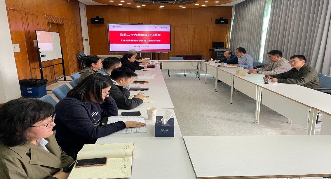 10月31日下午,上海经济管理中心在延长校区科技楼812会议室组织召开全体教职工政治学习会,深入学习党的二十大精神,分享讨论学习体会,部署下一阶段工作任务。
