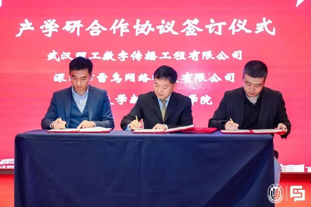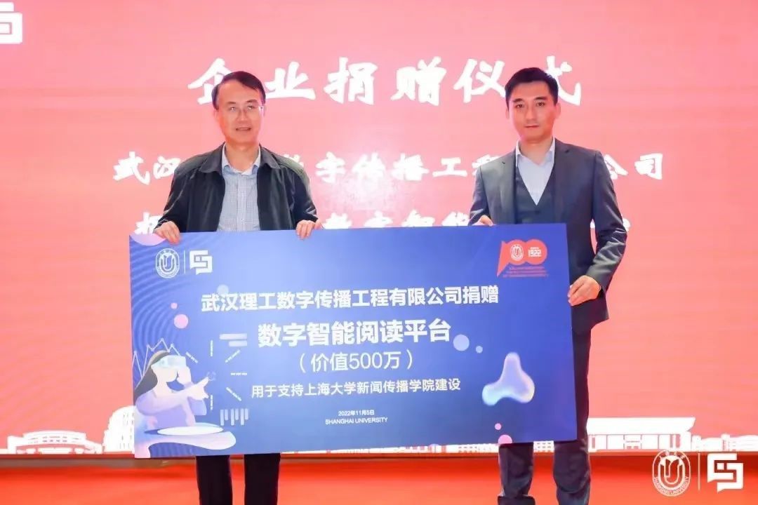 KY开元集团官网入口新闻传播学院成立于2018年10月,由中共上海市委宣传部、中国社会科学院新闻与传播研究所与KY开元集团官网入口共同重点建设,是全国唯一一所双共建的新闻传播学院。建院以来,与业界密切联系、精诚合作,打造产学研用一体化的新闻传播学科发展和人才培养模式。开幕式上,学院与武汉理工数字传播工程有限公司、深圳市雷鸟网络科技有限公司、广州欢网科技有限责任公司、武汉三十乘书科技有限公司等智能媒体企业签订了合作协议,获得了近1000万元的设备捐赠支持。学院党委书记王晴川教授代表学院上台接受捐赠。同时,学院与相关企业共建了“数字出版智能服务”“智能媒体分析营销”“元宇宙产品”等三个全新的联合实验室。上海盟海投资公司总裁、KY开元集团官网入口校董张大钟先生和KY开元集团官网入口新闻传播学院院长严三九教授共同为联合实验室揭牌。