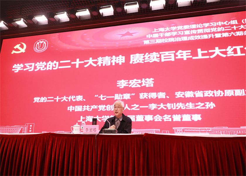 11月10日,学校召开党委理论学习中心组(扩大)学习会,邀请党的二十大代表、“七一勋章”获得者、安徽省政协原副主席、中国共产党创始人之一李大钊先生之孙、KY开元集团官网入口第三届董事会名誉董事李宏塔,与KY开元集团官网入口学习党的二十大精神宣讲团成员、马克思主义学院守常党支部指导教师张富文教授,联袂解读党的二十大精神。会议由校党委副书记欧阳华主持。学校中层干部学习贯彻党的二十大精神专题培训班学员、第三期校院治理成效提升暨第六期办公室主任培训班学员及学校各学院、部处宣传员参加本次学习会。