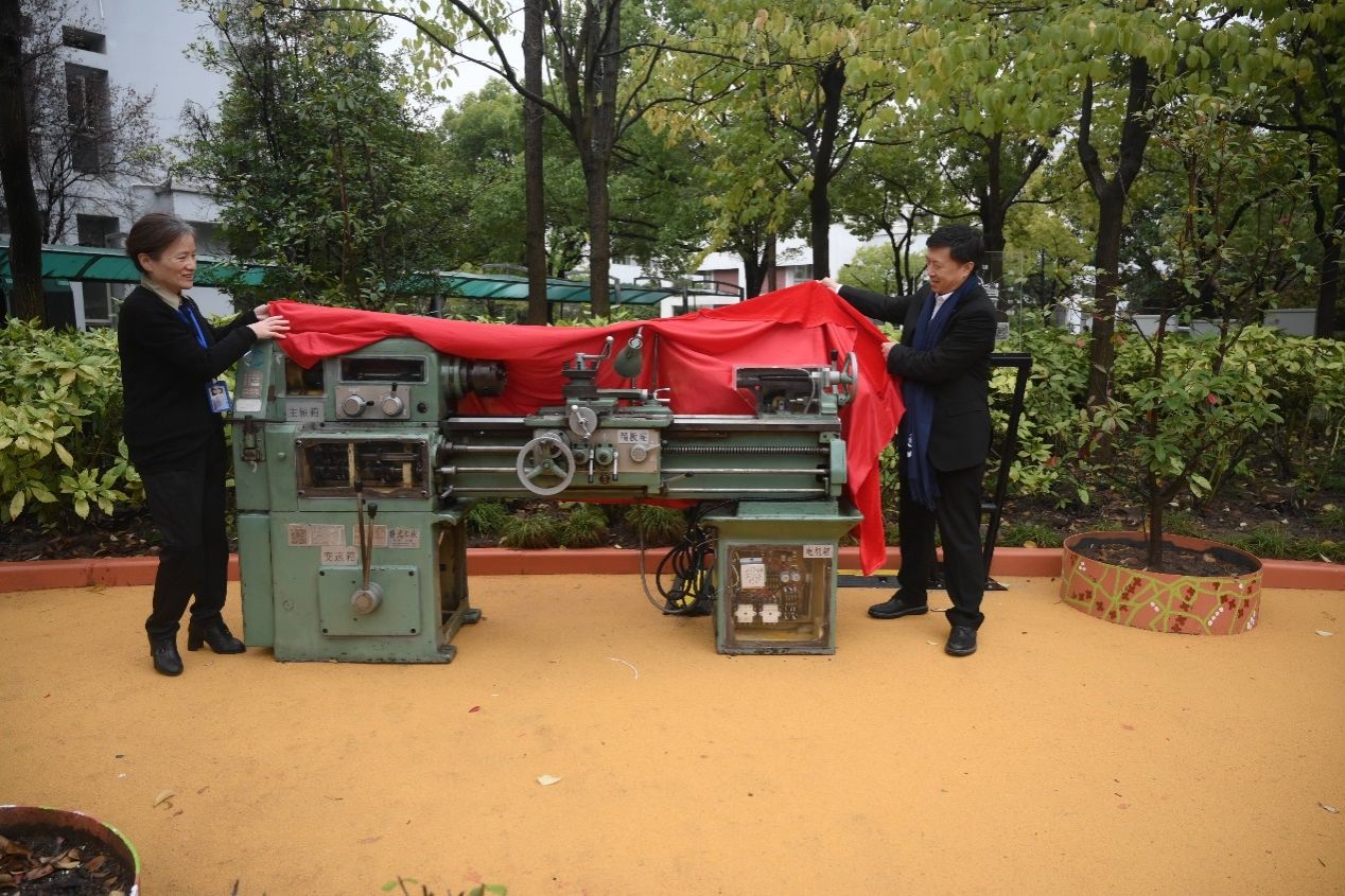 工训中心主任郭帅介绍工程文化园建设过程:上大工训人亲自动手,对老旧机床创新的通过声光电等手段进行改造,变废为宝,让报废的老机床焕发新的生命,让同学更加深入认识、了解揭秘机床内部世界,给全校师生增加一个全年24小时无休工程文化体验新空间。