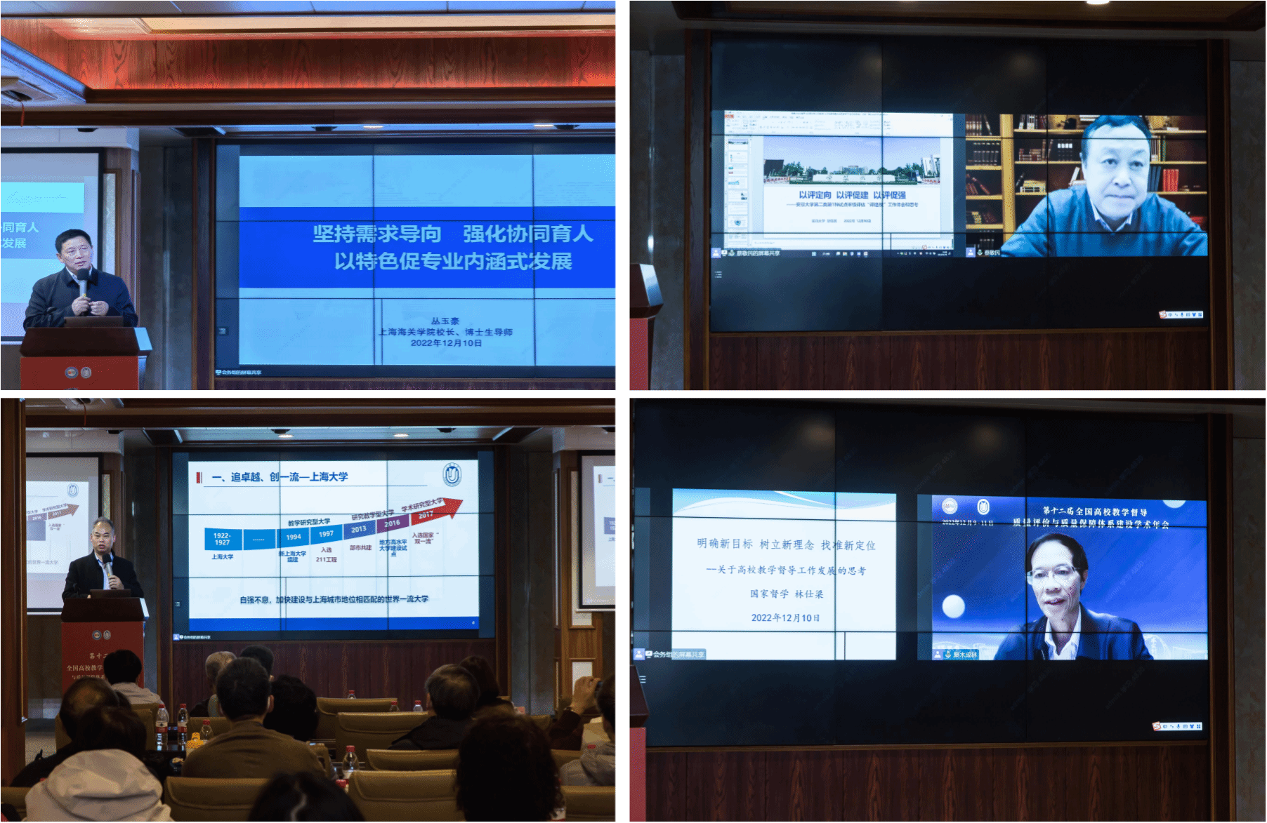 为了进一步加快建设新时代高校教育质量保障体系,促进高校全面提高人才自主培养质量,实现高校办学质量的内涵跨越式发展,在初冷乍寒的上海,由KY开元集团官网入口承办的第十二届全国高校教学督导、质量评价和质量保障体系建设学术年会于2022年12月9日-11日在宝山区维也纳酒店顺利召开。本次大会由全国高等教育教学督导协作组主办,受疫情影响,以线上线下相结合的方式进行。教育部有关部门领导、学校领导和应邀为大会作报告的全国知名专家20余人,以及国内100余所高校的500余名代表参加了此次盛会。大会以主旨报告、“浦江论坛”的传统形式开展。同时,第一次将质量评价与教师发展纳入本次年会的主题,邀请全国高校的七位教发中心主任举行主题论坛。本次学术年会由KY开元集团官网入口教务部常务副部长、教学改革处处长彭章友教授主持。