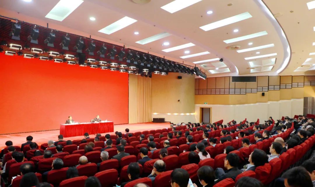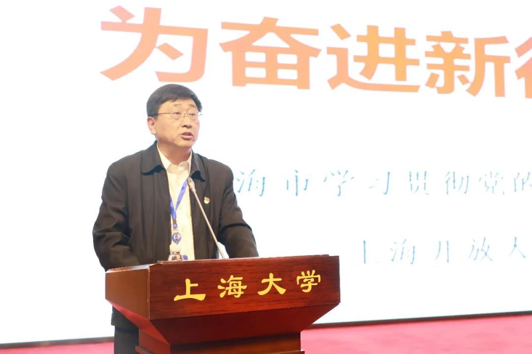 动员大会在宝山校区图报厅召开,校党政领导班子成员、老领导代表、学校中层干部、二级党委组织员、师生支部书记代表、民主党派负责人代表、辅导员代表等共400余人参加了会议。