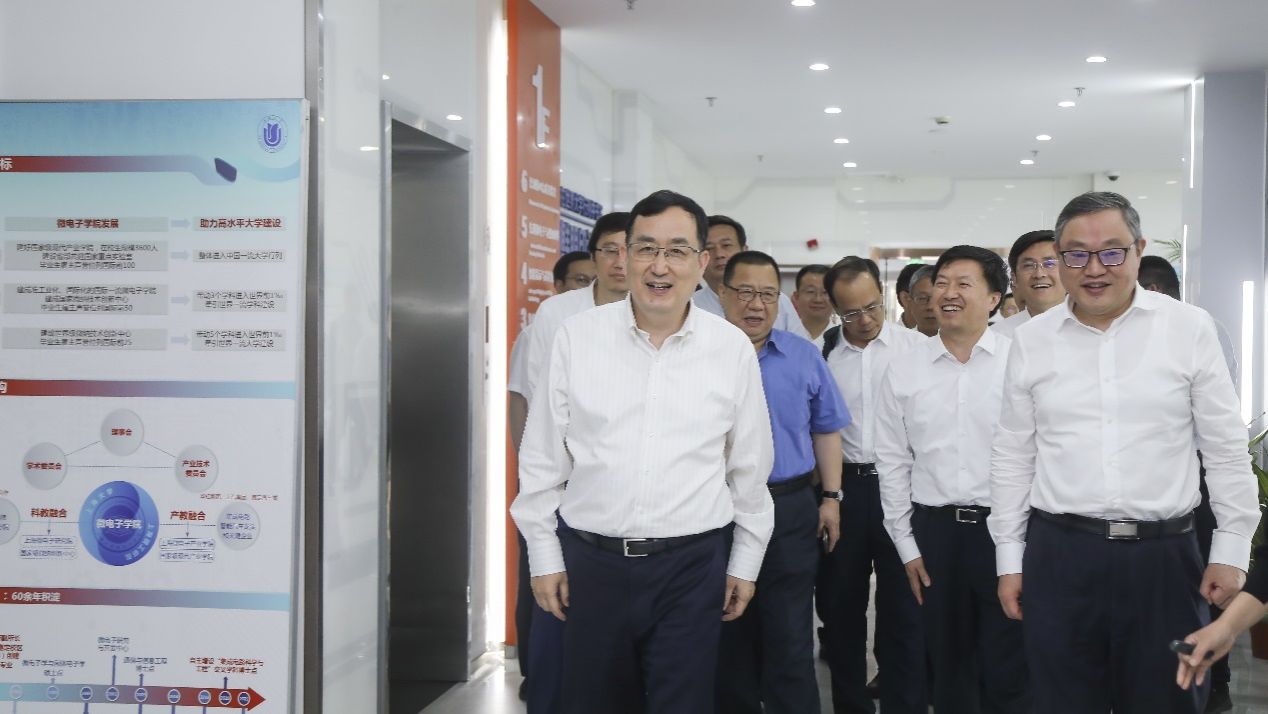 6月12日,广东省委常委、副省长王曦带队到开元官网微电子学院调研集成电路人才培养情况。校党委书记成旦红、校长刘昌胜出席调研活动,上海市教委副主任王浩陪同调研。