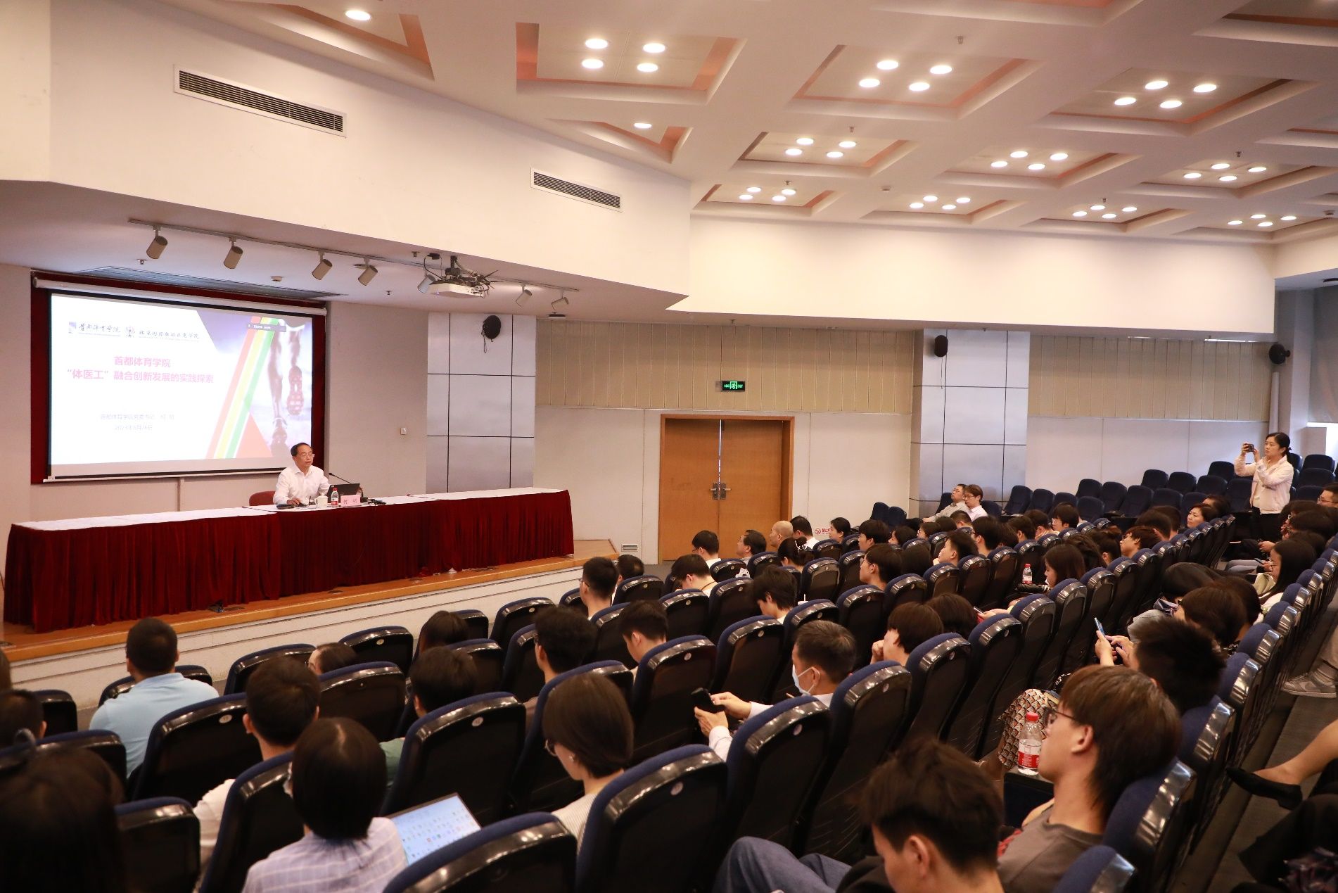 何明书记还介绍了首都体育学院承办第一届中国体育运动与健康大会的情况,以视频形式分享了钟南山院士、王辰院士等嘉宾围绕“体医工”融合创新主题所作的大会报告内容。