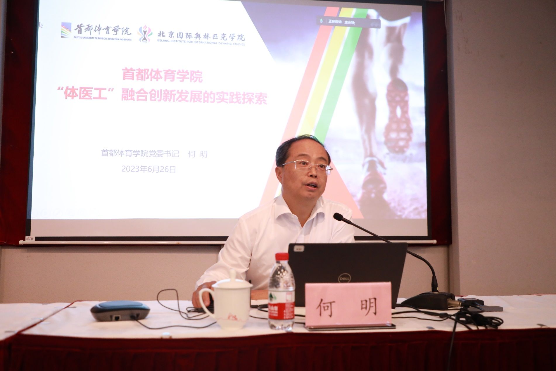 何明书记首先介绍了首都体育学院的概况,着重分享了首都体育学院办学过程中明确“高水平、小而精、国际化、服务型”办学定位、突出六大办学特色,推进学校快速发展的情况。
