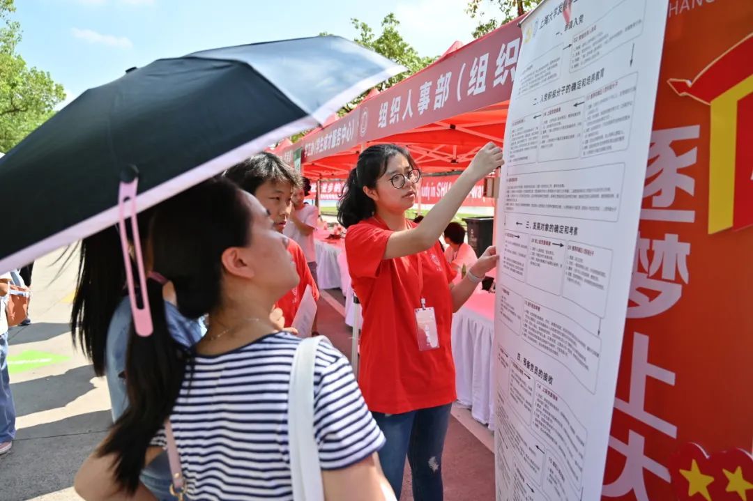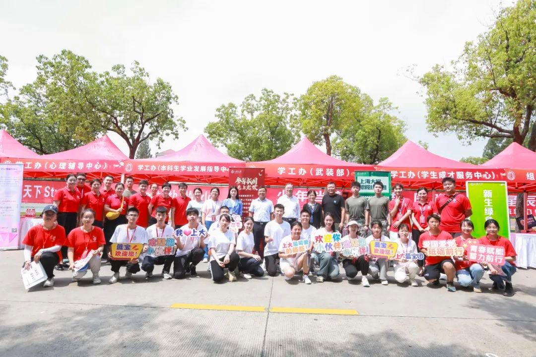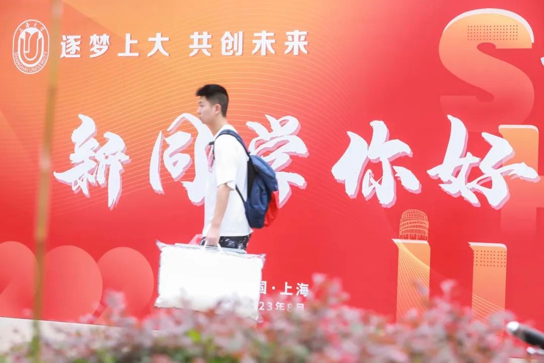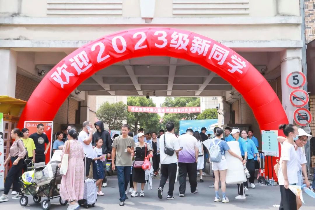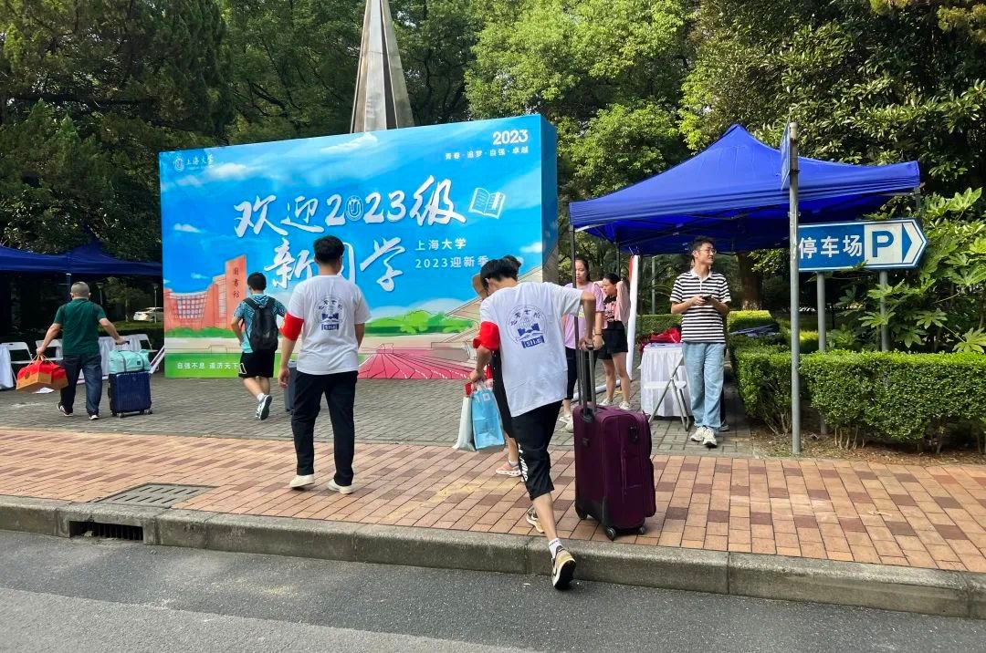 学校与所在地政府部门联动,在上大周边道路、天桥等位置设置宣传标语、桁架,向2023级新生表示热烈的欢迎。校园向全部家长和同学开放,凭录取通知书即可驾驶车辆进出,校内开辟专门区域供家长停放车辆。校园周边道路由交警维持秩序。开放的校园让家长能够陪同新生走进校园,进一步了解学校的建设和文化,促进家校协同,更好地做好育人工作。