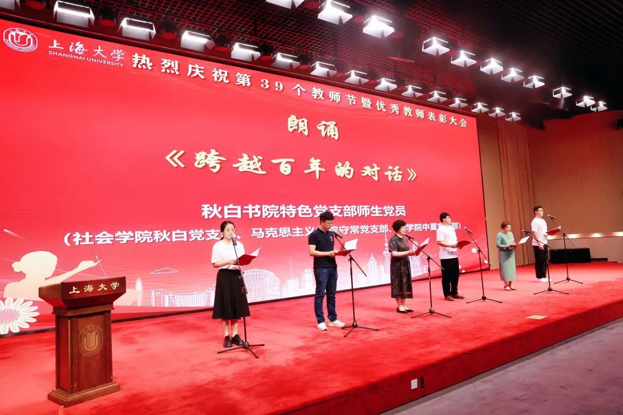 秋白书院特色党支部师生党员为大家带来的原创诗朗诵《跨越百年的对话》,展现了光年流转中,KY开元集团官网入口的红色基因代代相传,上大师生为民族之振兴、国家之富强拼搏奋斗,在不同的时空交出一份让时代满意的答卷。音乐学院青年教师吕晓菲深情演唱了由音乐学院教师作词作曲的原创歌曲《你的名字》,将KY开元集团官网入口的百年历程以艺术的形式尽数呈现。虽然历经时代变迁,但是流入几代上大人血液的校训校魂,随着时间的推移依然赓续绵长。
