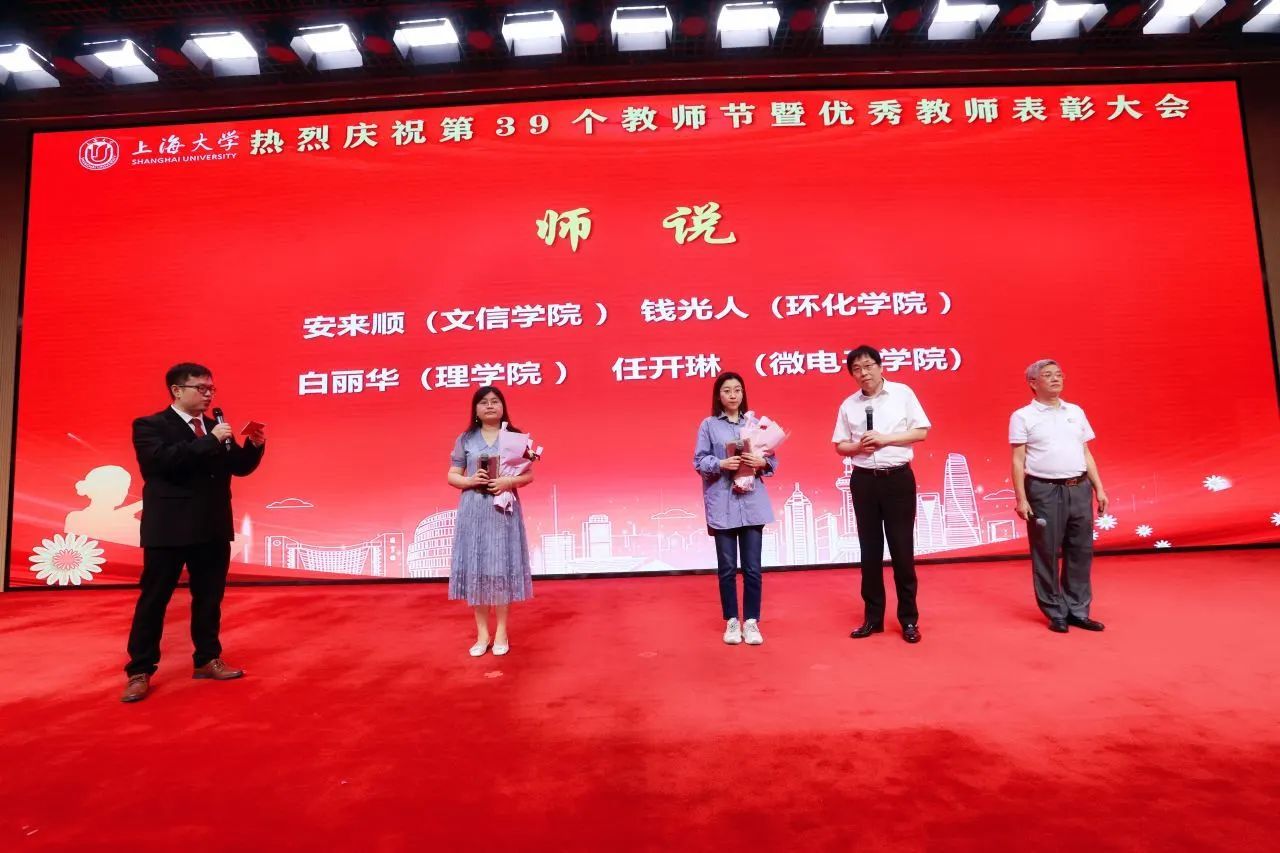 “我心目中的好导师”代表安来顺、钱光人,“优秀本科生全程导师”代表白丽华、任开琳老师分享了他们教书育人的使命和爱生如子的情怀。坚守三尺讲台,潜心教书育人是他们的追求,亦是每一位上大教育工作者无悔的选择。