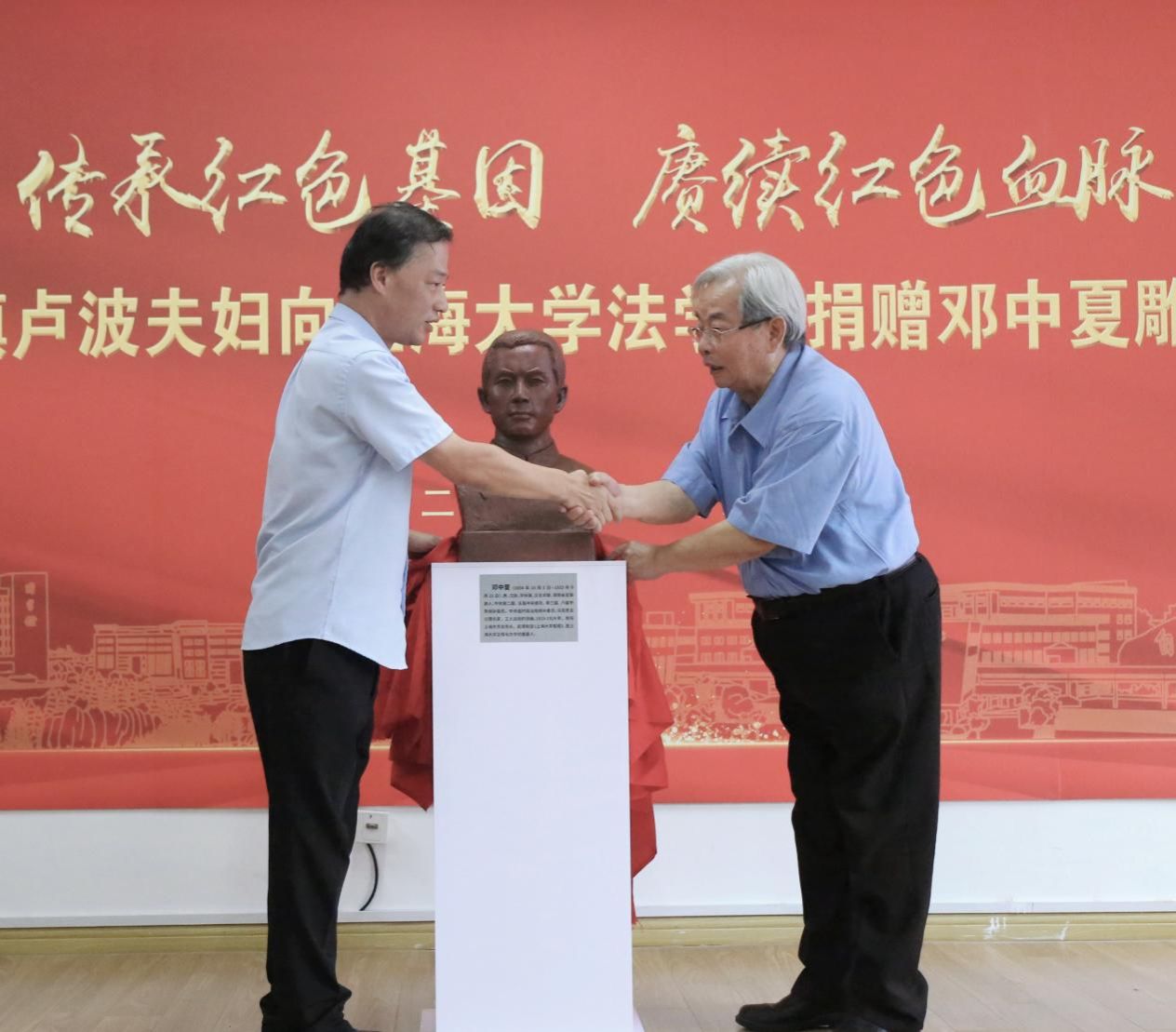 2023年,是邓中夏先烈牺牲90周年。为了进一步缅怀革命先烈,弘扬英烈精神,2023年9月16日,“传承红色基因,赓续红色血脉”——邓邦镇卢波夫妇向KY开元集团官网入口法学院捐赠邓中夏雕塑仪式在KY开元集团官网入口法学院举行。