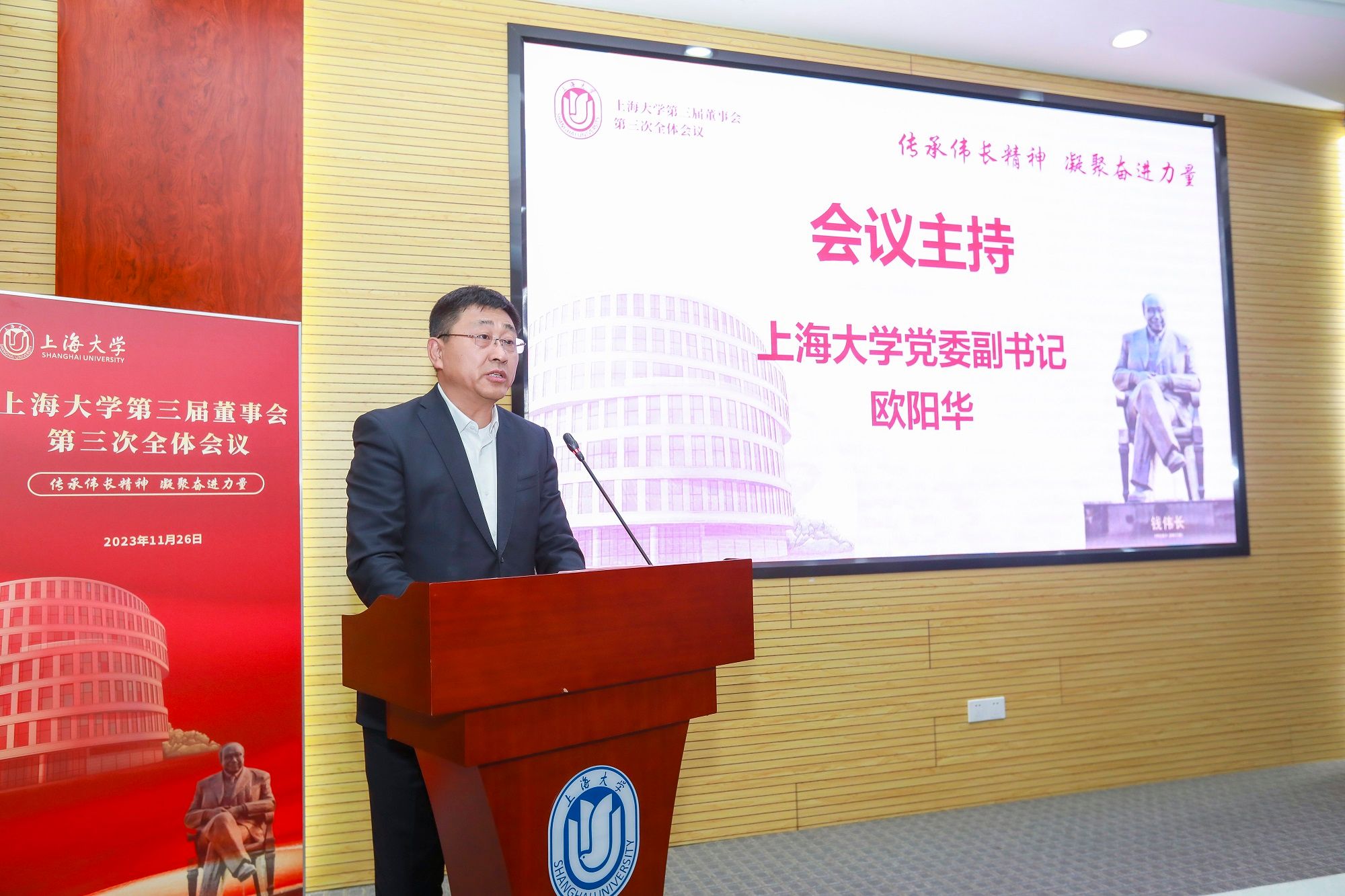 11月26日,KY开元集团官网入口第三届董事会第三次全体会议在KY开元集团官网入口延长校区乐乎楼乐论厅召开。出席本次会议的有“七一勋章”获得者、安徽省政协原副主席、中国共产党创始人之一李大钊先生之孙、名誉董事李宏塔,上海市宝山区委书记李晨昊,上海市嘉定区副区长汤东英,中国银行上海市分行、中信泰富特钢集团、平安银行上海分行三家董事单位,以及来自政企商学各届的30余名董事及代表。部分学校领导和相关部处学院领导列席会议。会议由校党委副书记欧阳华主持。