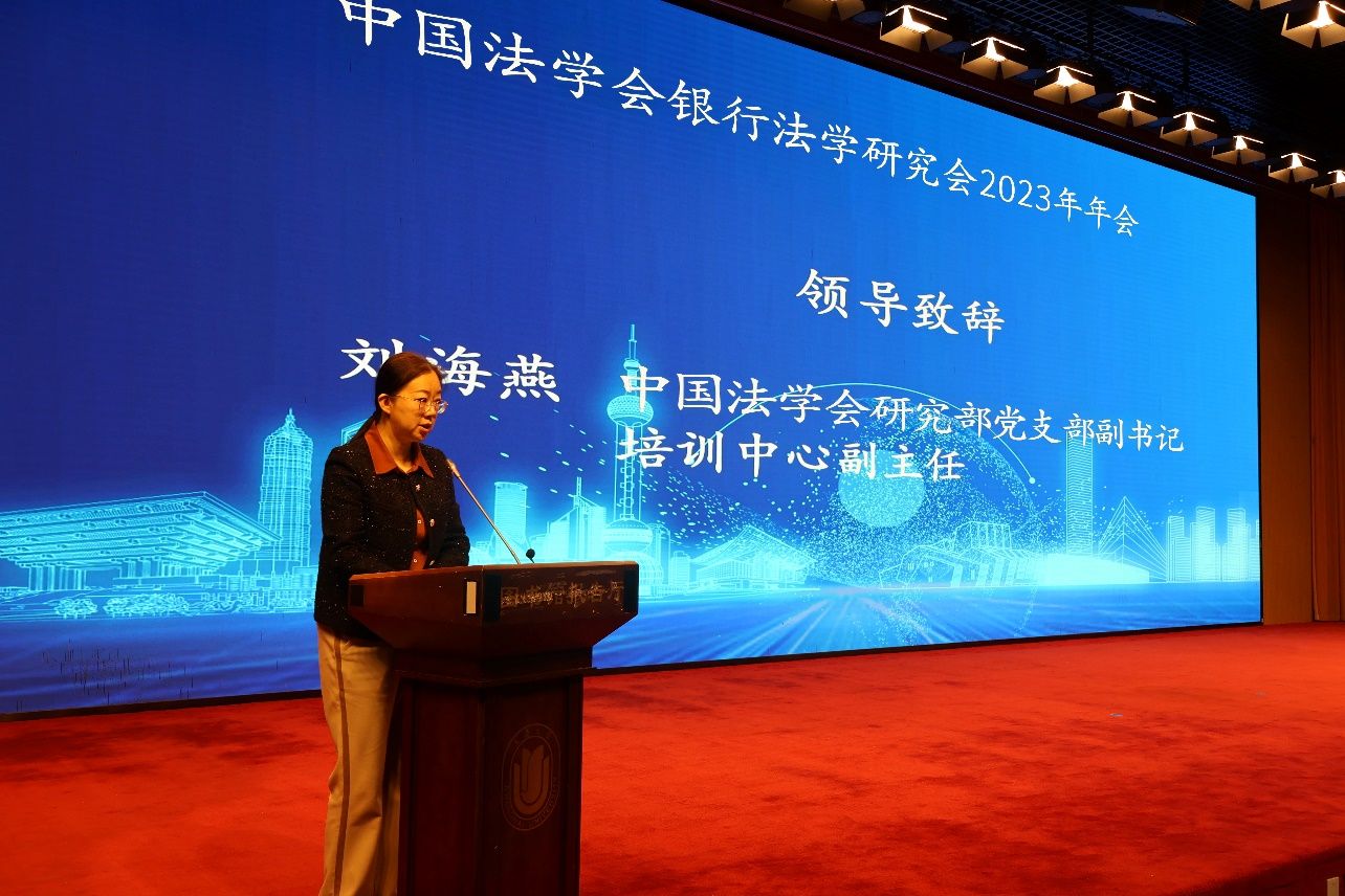中国法学会研究部党支部副书记、培训中心副主任刘海燕女士致辞,她对年会的召开表示热烈祝贺,指出要把学习贯彻习近平新时代中国特色社会主义思想摆在首要位置,坚持银行法学研究的正确政治方向;充分发挥银行法学研究会智库作用,为我国金融法治建设贡献聪明才智;更好发挥银行法学研究会人才资源优势,培养高素质法治人才,提升研究服务我国金融高质量发展的能力水平。
