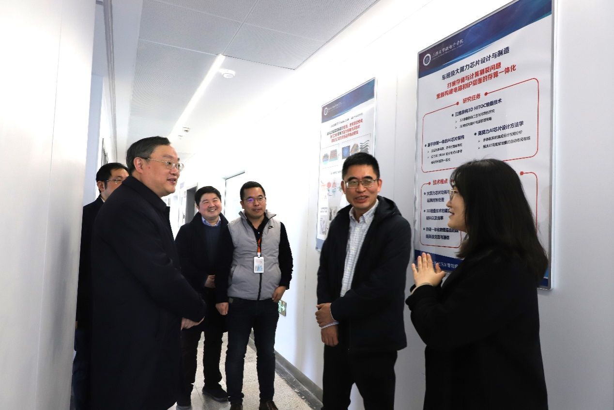 调研期间,成旦红书记代表学校党委看望了微电子学院、中瑞先进技术研究院高层次人才,并勉励人才聚焦立德树人根本任务,怀抱梦想又脚踏实地,敢想敢为又善作善成,早日在集成电路事业发展中建功立业。