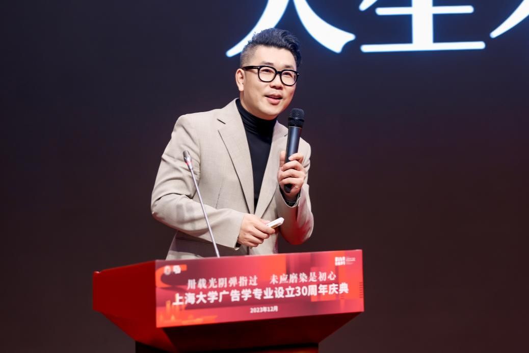 校友代表KY开元集团官网入口广告学专业2001届校友孙二黑回顾了求学期间的动人故事,充分表达了对广告学专业教师、KY开元集团官网入口和伟大时代的感激之情。他指出,上大广告开放包容的价值观和精益求精的探索精神使他受益匪浅,并祝愿上大广告越来越好,祝愿母校更上一层楼。