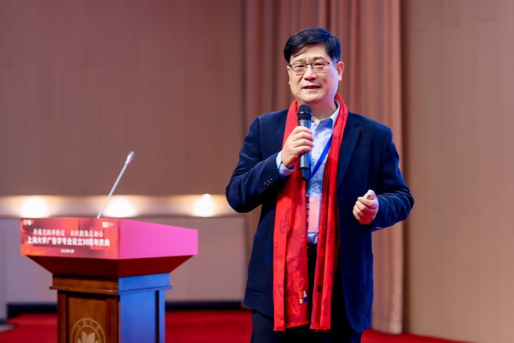 上海外国语大学计算广告与智能传播研究所所长姜智彬教授从生成式人工智能对广告产业的影响出发,重点探讨了AIGC时代广告产业结构、广告经营绩效等方面的“阶段型”颠覆式创新,并对一流广告专业建设的挑战与机遇展开论述。