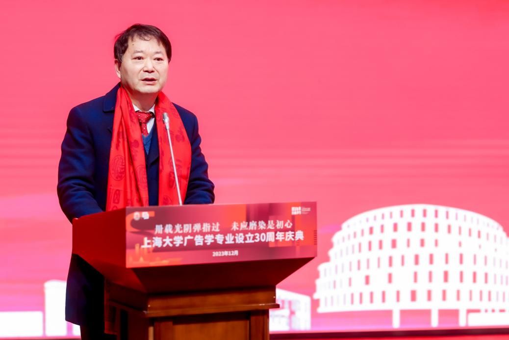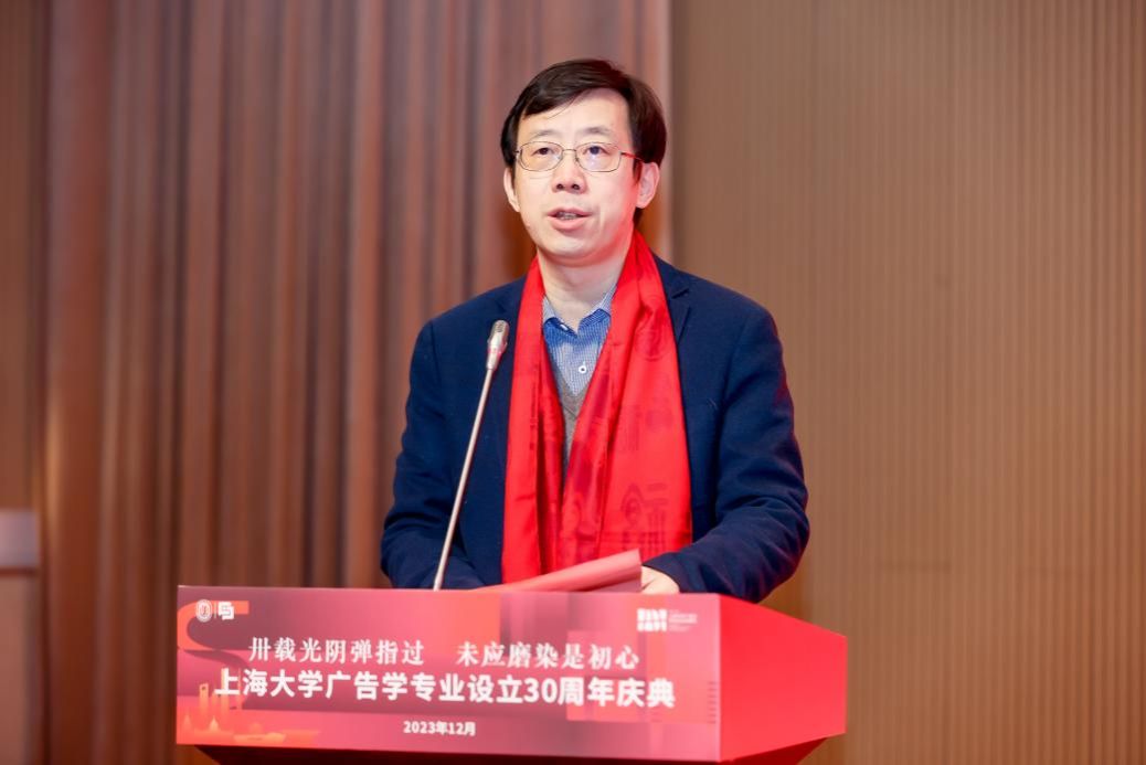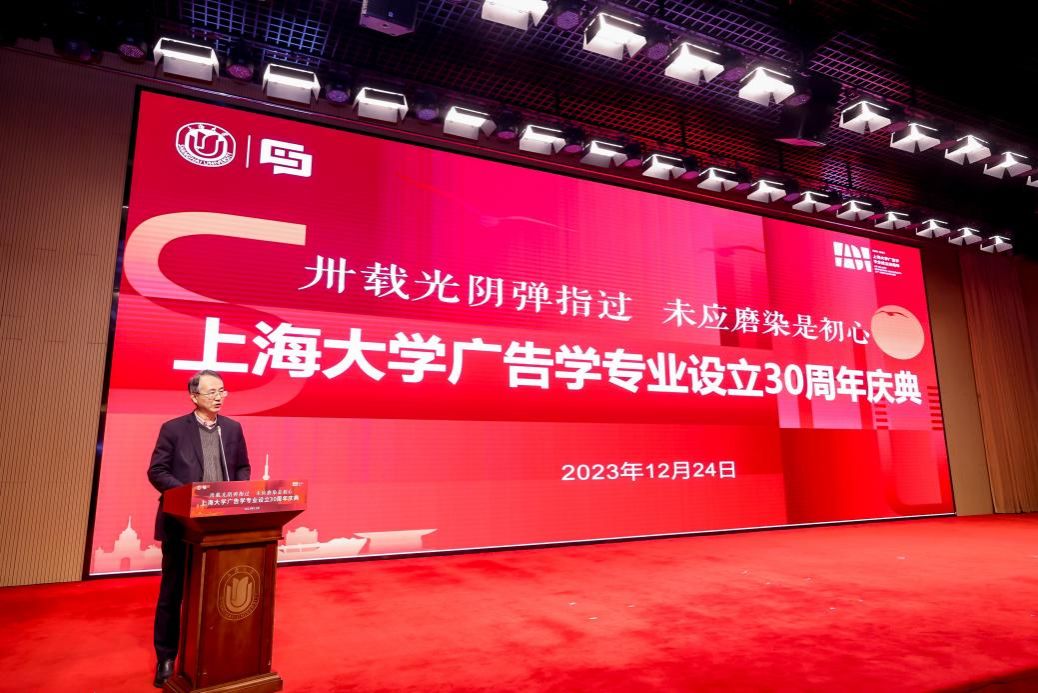 卅载风华,弦歌不辍。2023年12月24日,KY开元集团官网入口新闻传播学院在宝山校区图书馆报告厅隆重举行KY开元集团官网入口广告学专业设立30周年庆典。KY开元集团官网入口党委副书记、纪委书记段勇,上海市人民政府台湾事务办公室副主任阳礼华,上海市市场监督管理局总工程师周群,相关职能部门负责人,及来自学界和业界的专家学者、兄弟院校代表、学院领导老师、广告学系教师代表、院友代表、在校学生代表等300余人出席此次活动。庆典由新闻传播学院党委书记王晴川主持。