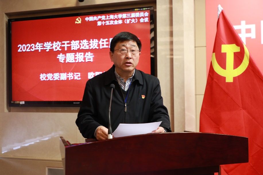 校党委副书记欧阳华代表党委常委会作《2023年学校干部选拔任用工作专题报告》。