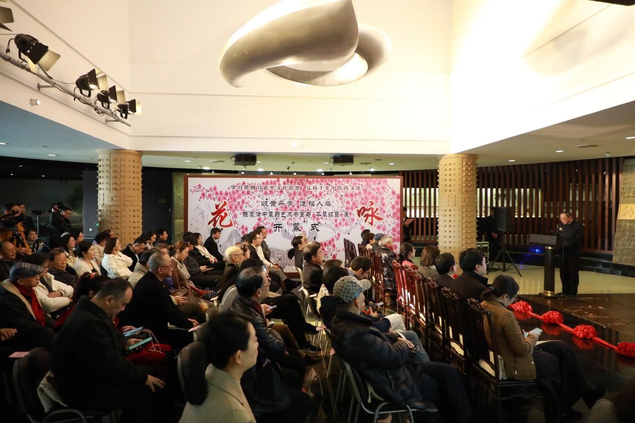 随着参加仪式的嘉宾们剪彩完毕,“岐黄丹青造福人类——陈家泠中草药艺术书画与《本草纲目》展”正式拉开序幕。大家移步博物馆三楼展区,欣赏陈家泠创作的合欢花、丁香花、百合花等12幅中草药题材书画作品,在“花咏”文化盛宴中感悟中国书画与中医药文化的融合之美。