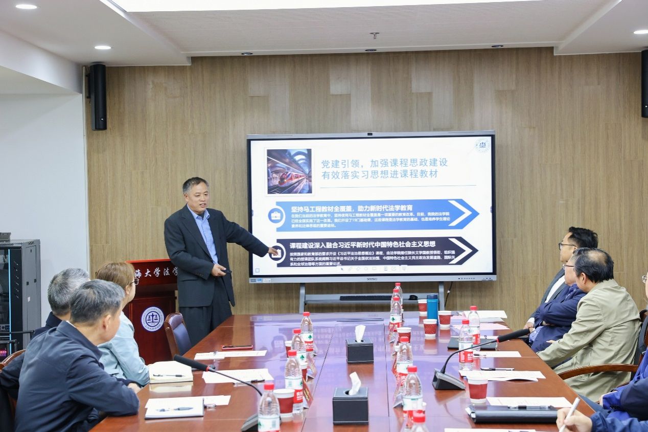 上海市法学会党组成员、秘书长夏咸军,办公室主任胡鹏、研究部三级调研员王健,校党政办、法务办、法学院班子成员和教授代表等参加座谈。