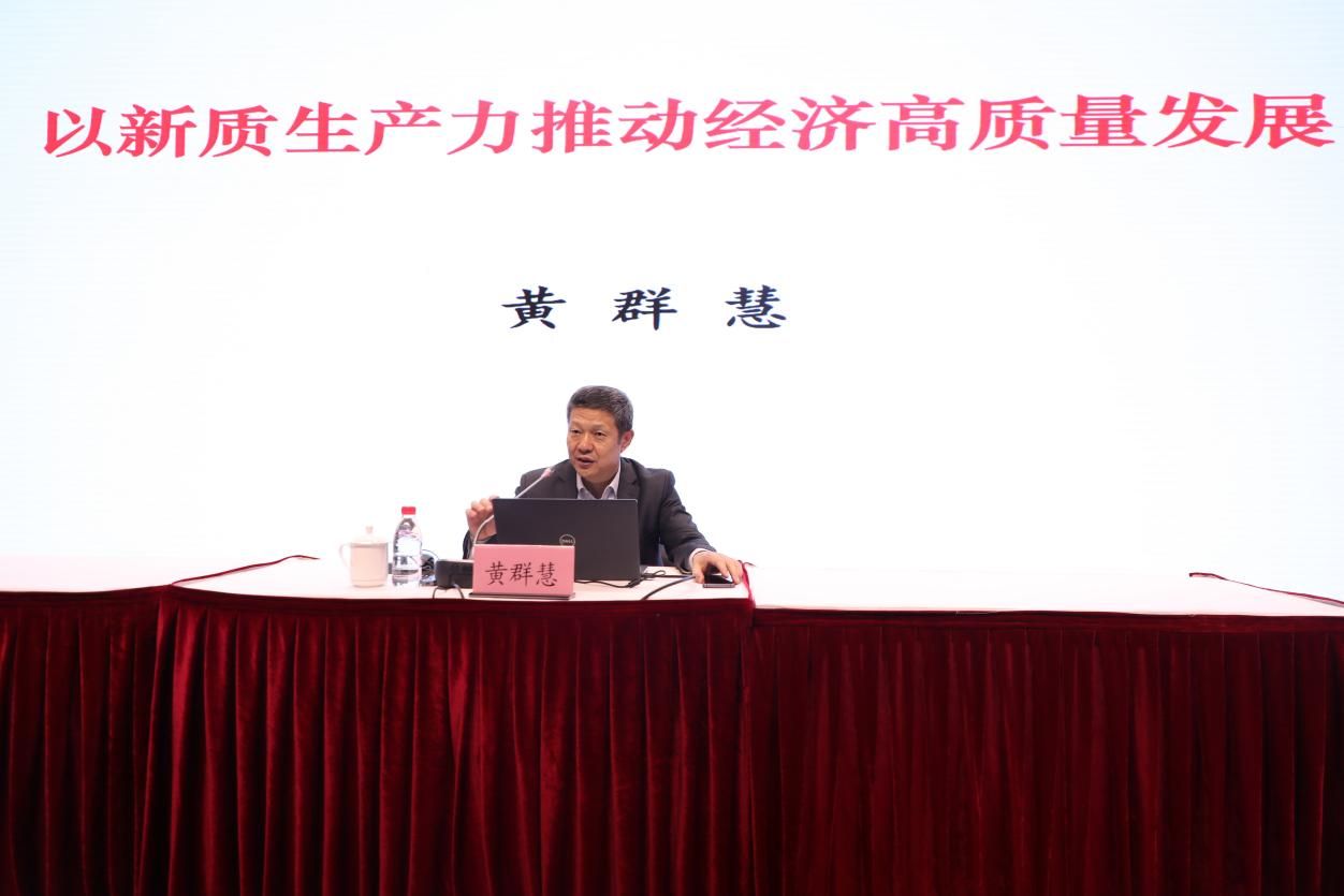 2024年4月25日,KY开元集团官网入口举办党委理论学习中心组(扩大)学习会,邀请第十四届全国政协委员、经济委员会委员,中国社会科学院经济研究所所长黄群慧作“以新质生产力推动经济高质量发展”专题辅导报告。校党委常委、党委宣传部部长曾军主持会议。