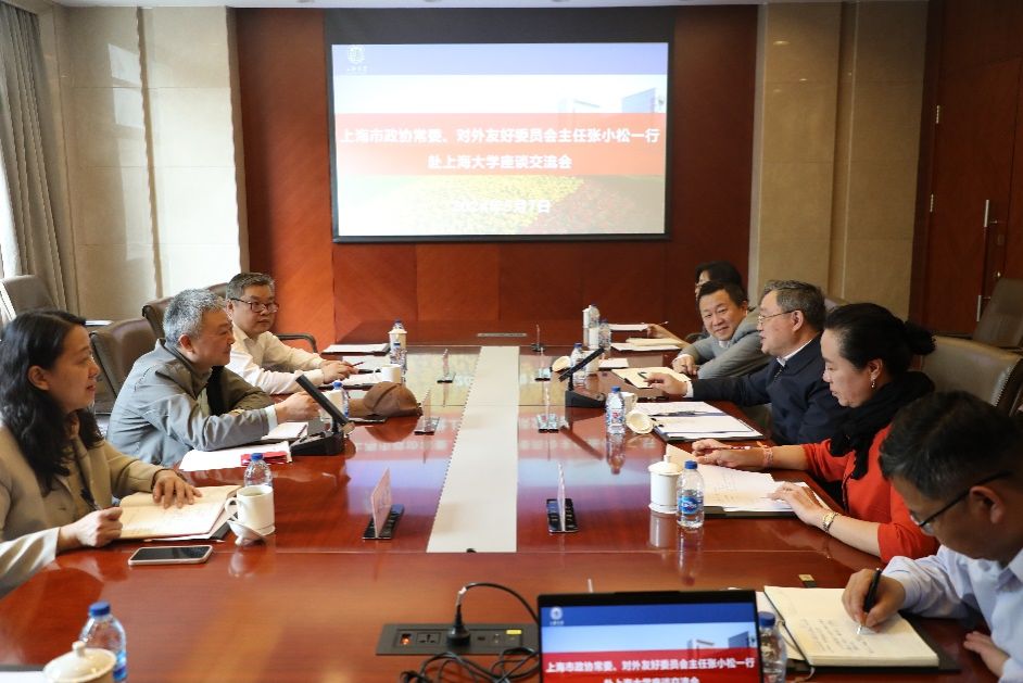 5月7日上午,上海市政协常委、对外友好委员会主任张小松,上海市政协对外友好委员会专职副主任孔戎一行来校调研交流。校党委书记成旦红,副校长于雪梅,党委常委、统战部部长、教师工作部部长曹为民及市政协,学校党政办、国际部相关负责同志参加座谈会。会议由于雪梅副校长主持。