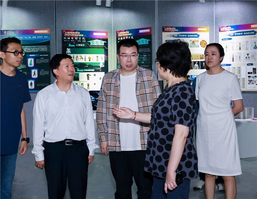 在上海电影学院领导班子成员的陪同下,翁铁慧副部长一行参观SFA剧场、影视摄影与制作区、MFA毕业展区、数字媒体技术互动区、戏剧影视文学作品展览区、动画展放映区等10个专业学科展区及两个摄影棚。
