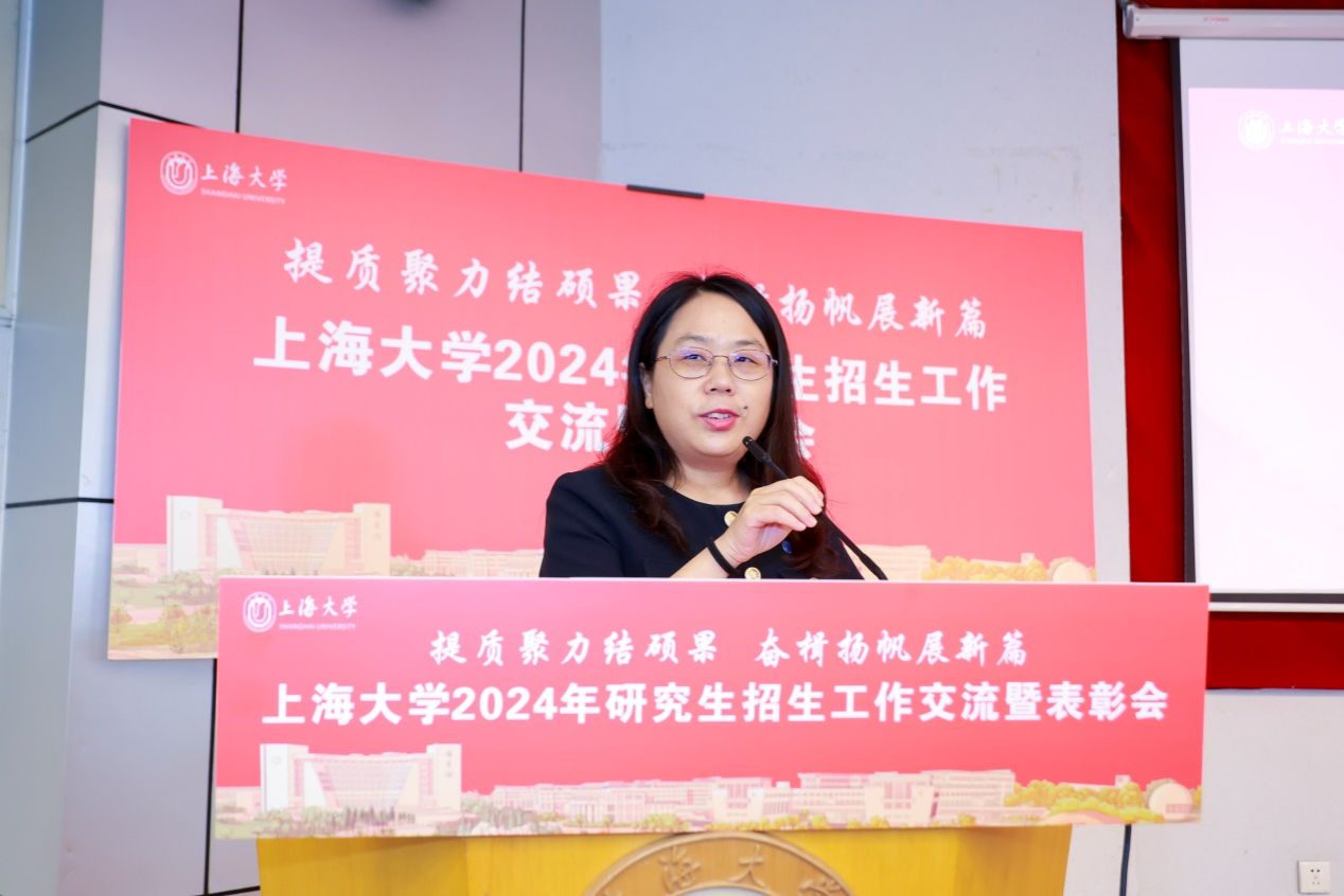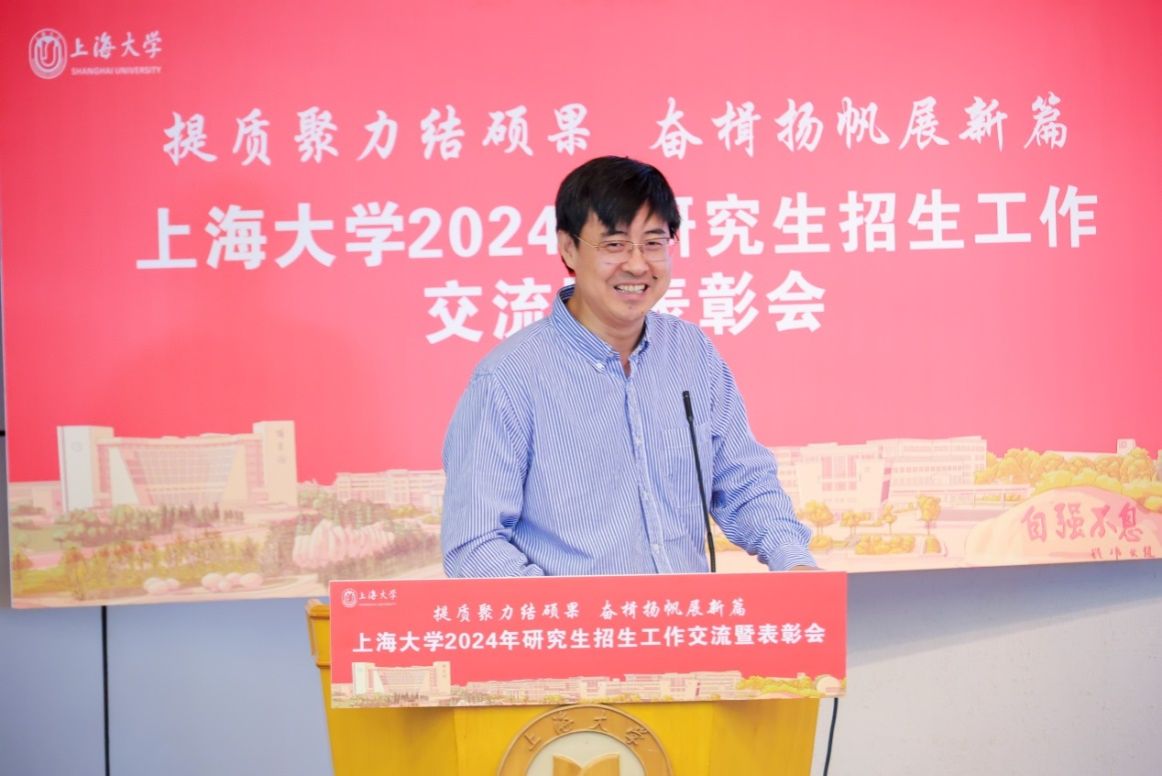 新闻传播学院副院长周宇豪、计算机工程与科学学院研究生教学秘书孙佳琳、钱伟长学院直博生羊英涛、上海美术学院硕博连读生徐也可等人分别代表获奖单位、获奖个人及2024级研究生新生做交流发言。