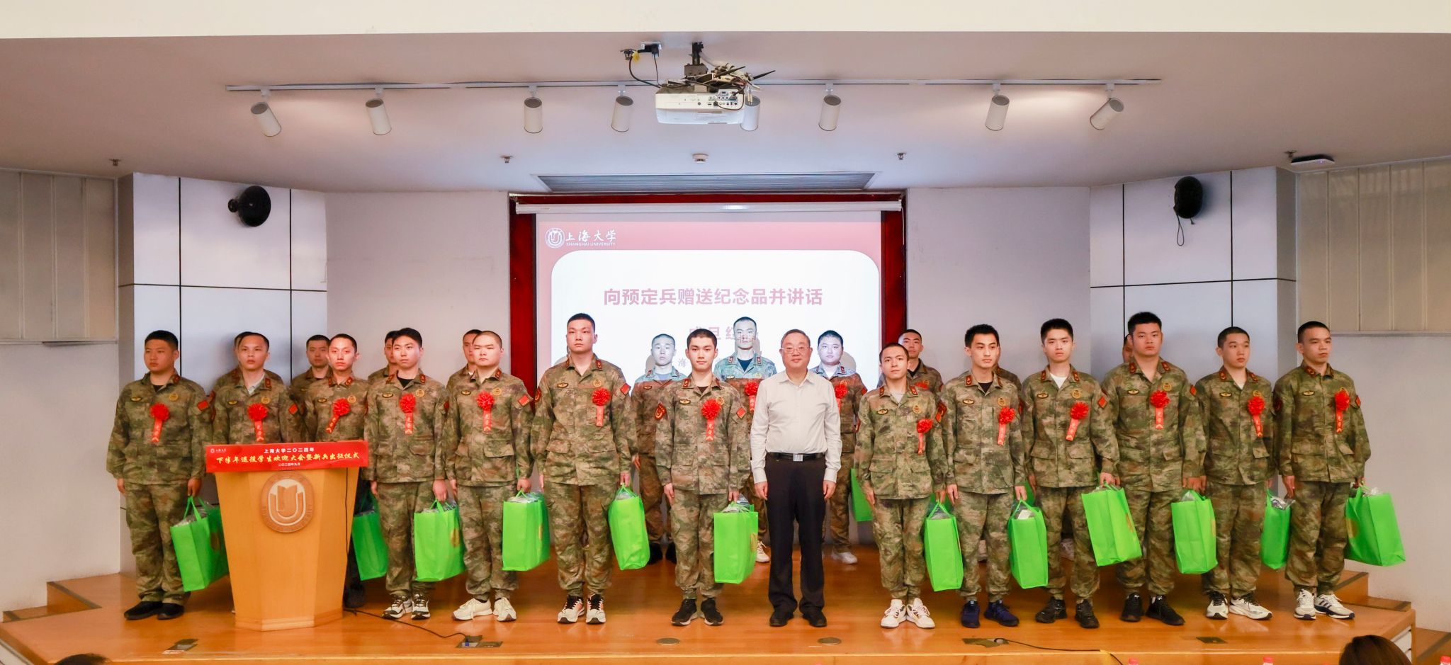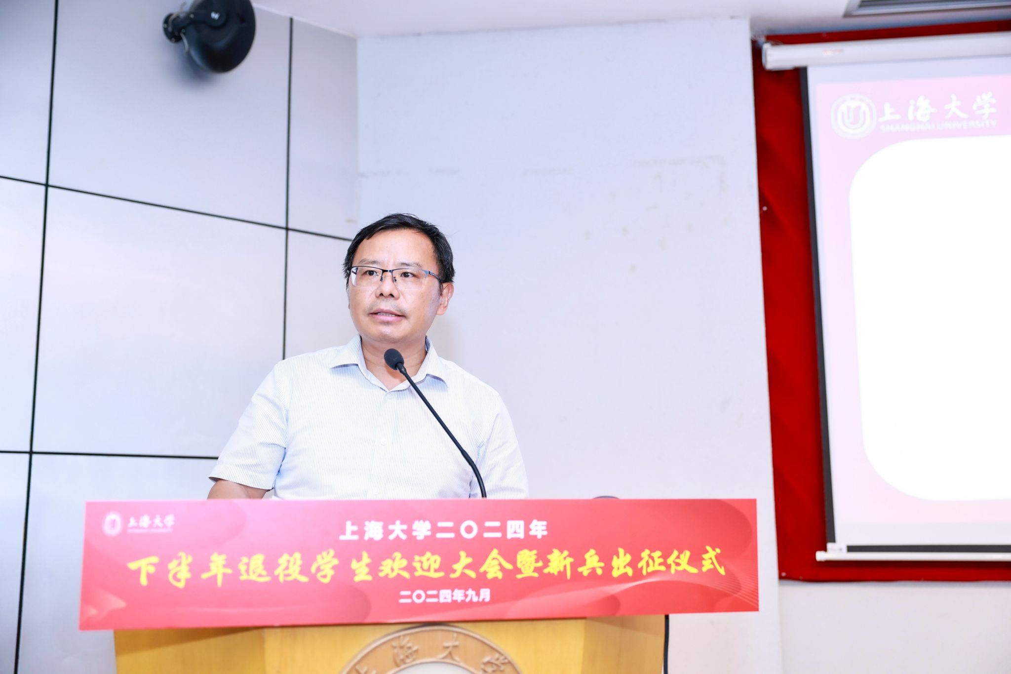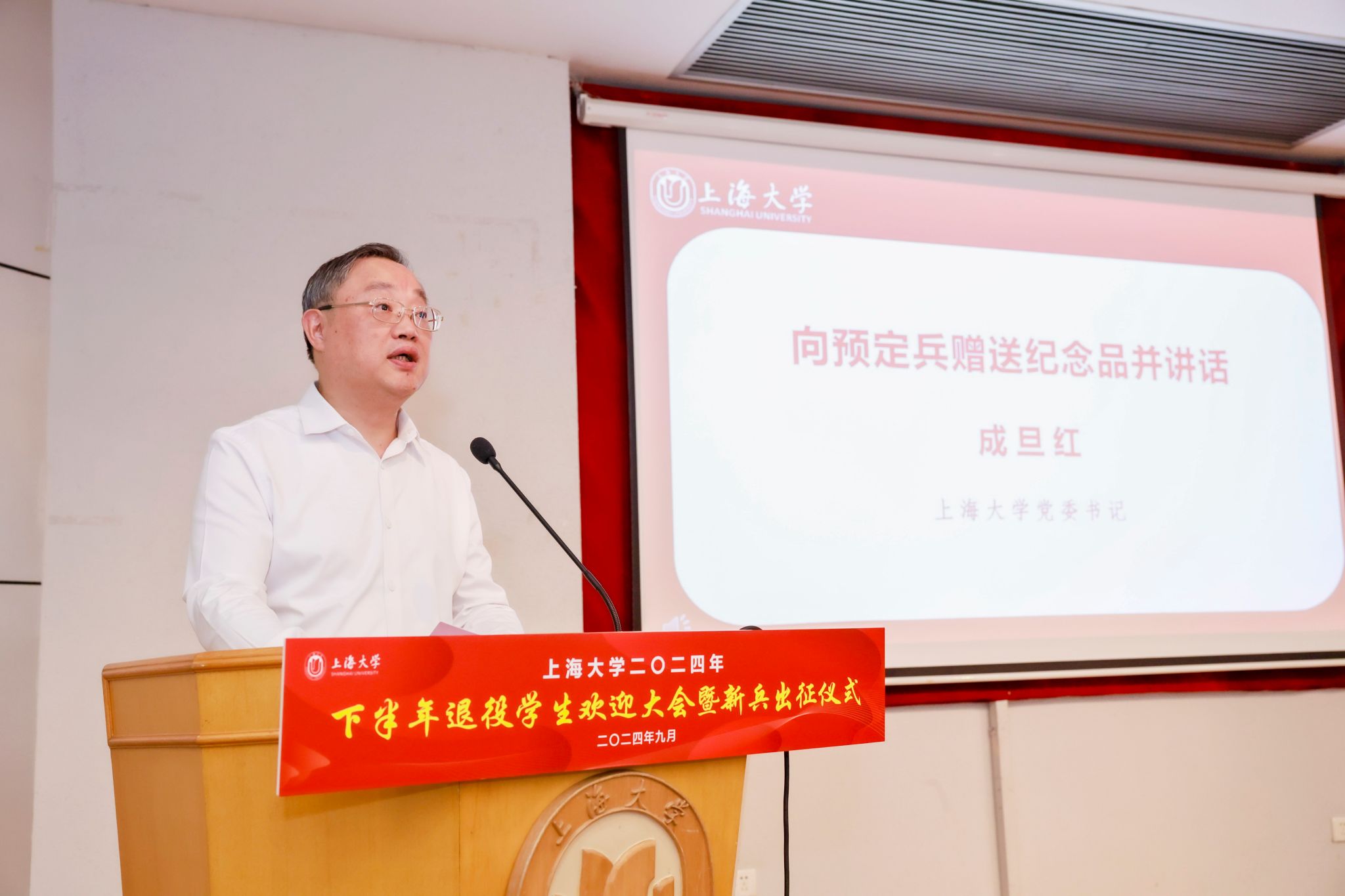 9月6日下午,KY开元集团官网入口2024年下半年退役学生欢迎大会暨新兵出征仪式在宝山校区行政楼报告厅举行。KY开元集团官网入口党委书记成旦红,党委副书记、副校长胡大伟,上海能源建设集团有限公司、中国电信上海公司、春秋航空和海信集团代表,学校相关部处、学院领导,教师、学生、家长代表参加活动。活动由孟祥栋主持。