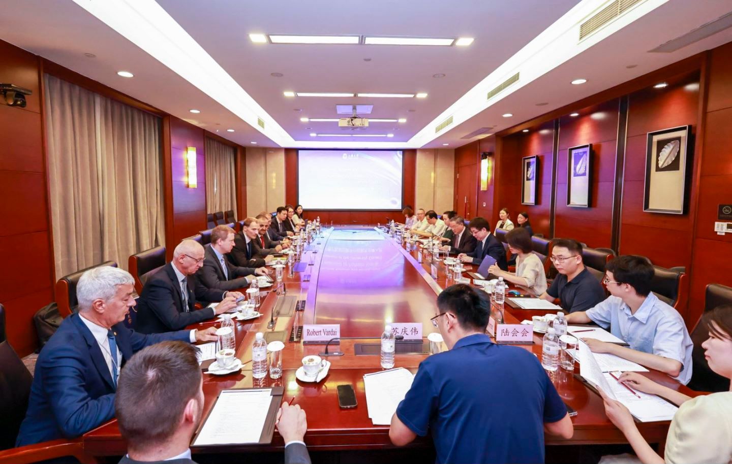 9月9日下午,匈牙利国家研发创新署(National Research, Development and Innovation Office, NRDIO)副署长Laszlo Lengyel博士、布达佩斯技术与经济大学校长Hassan Charaf教授、匈牙利驻华大使馆一等秘书(科技事务外交官)鲍洛安(Andras Zoltan Balogh)先生等匈牙利科技界、知名高校领导一行访问KY开元集团官网入口。KY开元集团官网入口党委书记成旦红,副校长于雪梅,国际部副部长、国际合作处处长崔巍,未来技术学院党委书记竺剑,未来技术学院党委副书记、院长彭艳等参加了接待。双方就KY开元集团官网入口与匈牙利国家实验室、高校的科技创新合作进行了交流探讨。