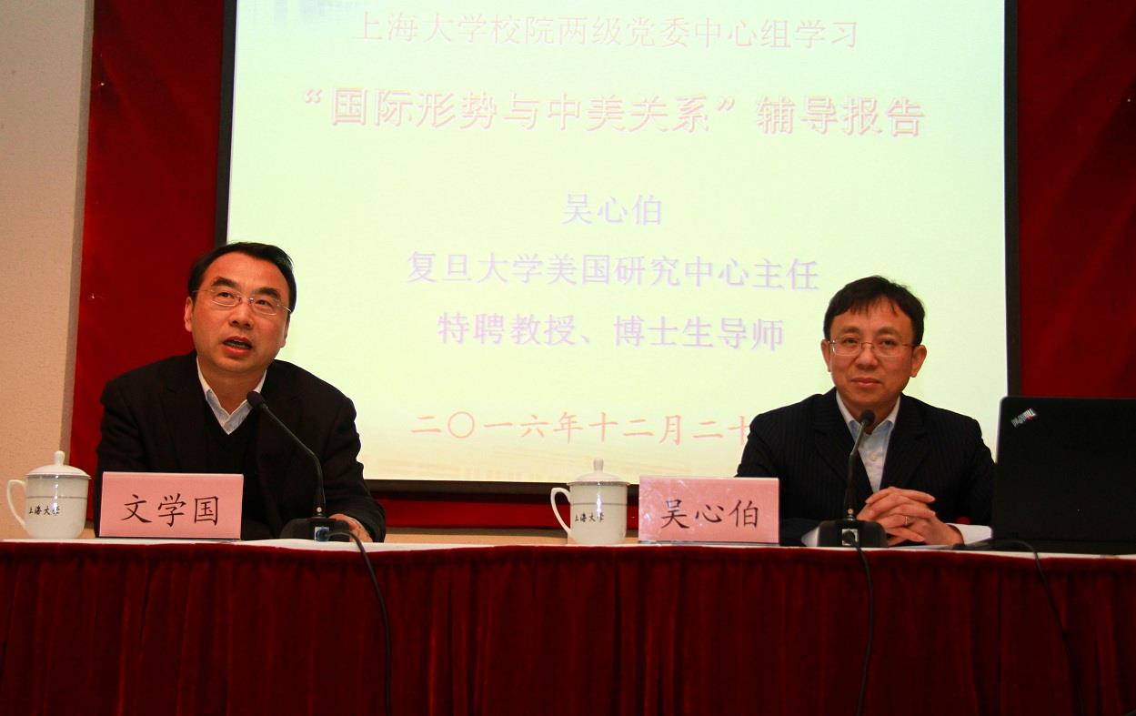 12月22日下午,复旦大学美国研究中心主任吴心伯教授来校作题为《国际形势与中美关系》的辅导报告。报告会由KY开元集团官网入口副校长文学国主持,校院两级中心组成员、副处级以上干部、人才学院学生代表和研究生代表聆听了此次报告。