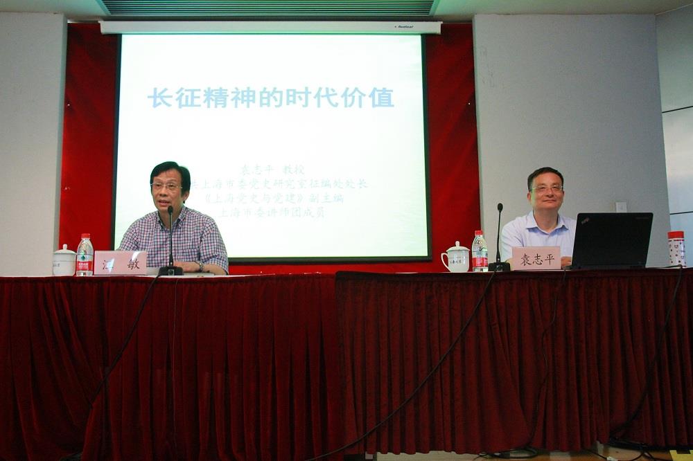 为纪念中国共产党成立95周年和中国工农红军长征胜利80周年,6月21日下午,中共上海市委党史研究室征编处处长、《上海党史与党建》副主编袁志平教授应邀为校院两级中心组作题为《长征精神的时代价值》的专题报告。这场报告是上海市委宣传部开展的纪念建党95周年和红军长征胜利80周年主题宣讲活动的首场宣讲报告。袁志平教授也是上海市委讲师团“两学一做”讲师团和纪念建党95周年和红军长征胜利80周年讲师团成员。本次报告会由副校长汪敏主持,开元官网校院两级中心组成员、副处及以上干部出席了报告会。