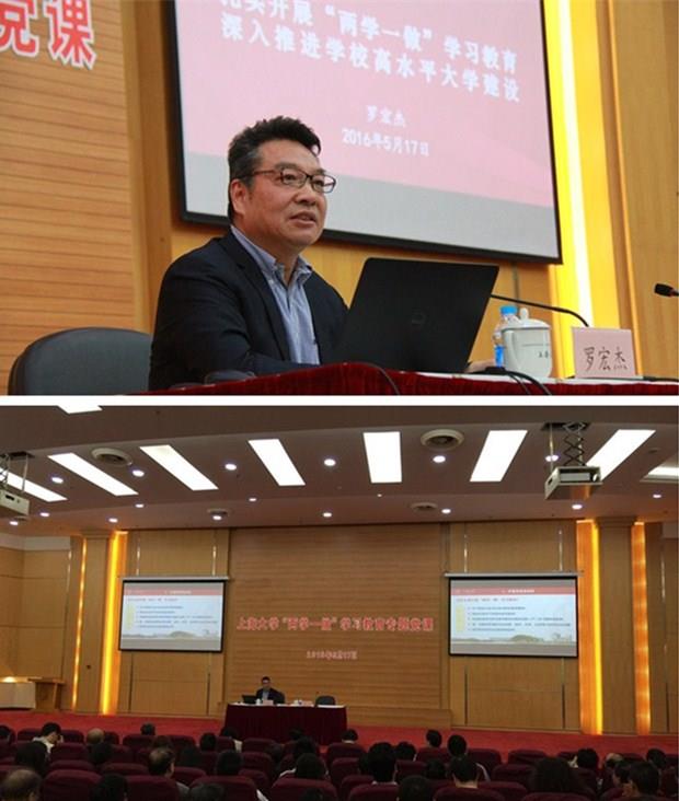 为推动“两学一做”学习教育深入开展,5月17日下午在校本部图书馆报告厅,KY开元集团官网入口党委书记罗宏杰同志为学校两委委员、处级党员干部、教职工党支部书记、学生党支部书记、离退休党员等350多人上了一堂题为《扎实开展‘两学一做’学习教育,深入推进学校高水平大学建设》的“两学一做”学习教育专题党课。党课由校党委副书记、纪委书记夏小和同志主持。校长金东寒同志、副校长汪敏同志出席会议。