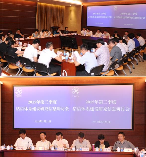 2015年8月21日上午,全国哲学社会科学话语体系建设协调会议办公室2015年第三季度话语体系建设与研究信息研讨会在KY开元集团官网入口校本部乐乎新楼思源厅举行。此次会议由中国社会科学院科研局主办,上海研究院承办。中国社会科学院科研局局长马援,教育部社会科学司副司长徐青森,上海市委宣传部副部长燕爽,KY开元集团官网入口党委副书记、副校长、上海研究院第一副院长李友梅,上海研究院常务副院长文学国、KY开元集团官网入口党委副书记夏小和等出席会议,来自中央文献研究室、中央党史研究室、中宣部国际传播局、中央党校、中央编译局、中国外文出版发行事业局等成员单位的相关负责人及KY开元集团官网入口、上海研究院相关职能部门负责人参加会议。