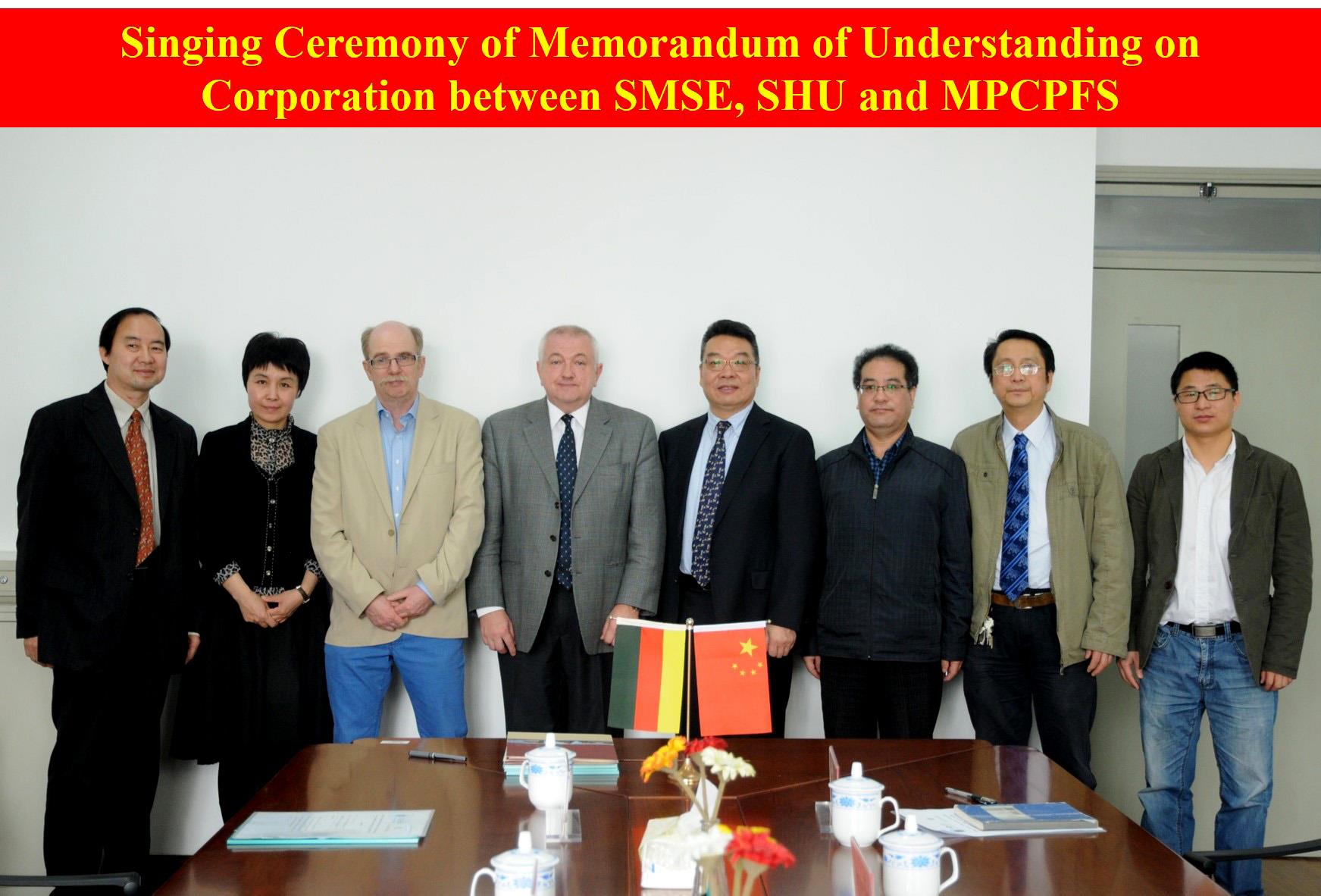 4月24日上午,KY开元集团官网入口与德国Max-Plank化学物理固体研究所开展合作研究备忘录签约仪式在KY开元集团官网入口材料科学与工程学院举行。签约仪式由KY开元集团官网入口材料科学与工程学院张捷宇院长主持,罗宏杰校长致欢迎词,Juri Grin所长讲话。罗宏杰校长,Yuri.Grin所长和张捷宇院长共同签署了“Memorandum of Understanding on Corporation between SMSE, SHU and MPCPFS”。该备忘录的目的是建立双方在材料固体化学物理领域的合作研究框架,主要聚焦于具有新性能的材料探索及其化学物理研究。研究生联合培养和青年学者双边交流也将是合作的一个重要部分。该合作研究备忘录的签署不仅契合了中国的材料基因组战略计划,也标志着KY开元集团官网入口与德国Max-Planck化学物理所的合作迈出了重要的一步,并将推动KY开元集团官网入口在材料科学等相关领域的重要发展。