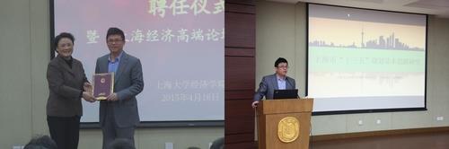 2015年4月16日下午2点半,开元官网在校本部东区经管楼101蔡冠深讲堂举行兼职教授聘任仪式,聘任上海市人民政府发展研究中心主任、党组书记肖林博士为开元官网兼职教授。
