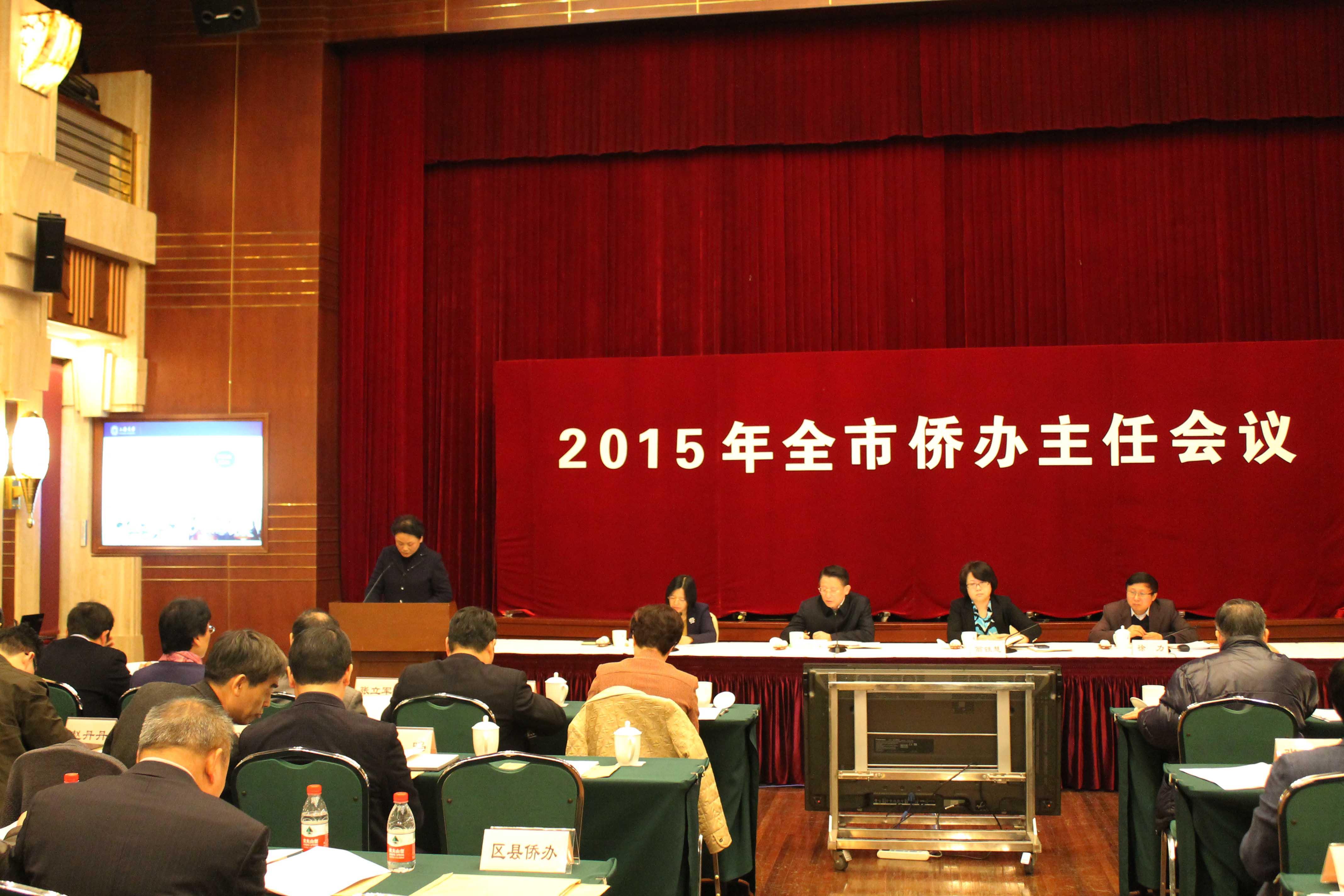 为认真学习贯彻党的十八届三中、四中全会精神和习近平总书记系列重要讲话精神,以“四个全面”战略布局为引领,全面部署2015年上海侨务工作,上海市政府侨办于3月24日在市委统战部会议中心召开2015年全市侨办主任会议。市委常委、统战部部长沙海林,副市长翁铁慧出席会议并讲话。市政府副秘书长宗明主持会议。市政府侨办主任徐力做工作报告。全市各有关涉侨部门负责人,各区县、大口、高校、重点联系单位分管领导和全市侨务干部约150人参加了会议。