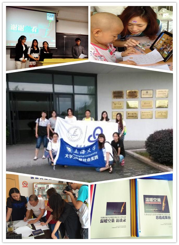 获得特等奖的《“你我同行,快乐成长”——与医务社工服务探索》项目主要是对长期住院的白血病儿童情绪及社会性发展状况进行调查分析,揭示其心理社会性发展中存在的问题,缓解患儿的情绪心理问题,期望改善患儿及社会大众的误解,对白血病儿童的社会性需求发展具有现实意义,在对患儿需求评估基础上,探讨如何为住院白血病患儿提供专业社会工作服务。获得特等奖的《“再造乡土”——乡村建设路径选择比较调研》项目团队在两年前就开始“再造乡土”课题的社会实践,结合分析现代化家庭农场与资本下乡、土地租赁与流转来看长三角地区的农村变迁。获得一等奖的影视学院、青年志愿者协会的《温暖空巢——失独家庭生活状况调研与关爱行动》从影视、新闻的角度,调研失独老人的社会网络支持状态,反映他们的生活状况,从而对上海市的失独家庭扶助制度建言献策。获得优秀奖的《男同性恋妻子家庭婚姻现状调查及对策研究——以上海市为例》从法学的角度,通过对“同妻”的家庭婚姻现状的调查与研究,使人们了解这一隐秘的群体,呼吁更多同妻权益保护组织的成立,引起相关部门的重视。