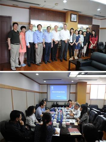 汪校长首先对客人的到访表示热烈的欢迎,随后万旺根处长介绍了KY开元集团官网入口的基本情况,包括办学规模,学科特色,国际合作等等。在认真听取了KY开元集团官网入口的介绍后,Ron Burnett校长说,艾米丽卡尔艺术设计大学是一所规模比较小,但是专业性很强的大学,其中设计类占到40%,艺术类20%,美术类35%。他们的特长是研究,强势学科包括健康,电影,3D,材料科学,纺织,机器人和社会媒体等等。艾米莉卡尔艺术与设计大学是加拿大不列颠哥伦比亚省著名的公立大学,坐落于风景优美的温哥华市,提供美术、设计、艺术类的学士学位,设计和应用艺术的硕士学位,采取小班教学的方式,其中四分之一的学生是国际学生。这所大学是世界上一流的设计学院,与全球知名的艺术学院都有密切的联系,并且在业界有超过300家的合作伙伴。