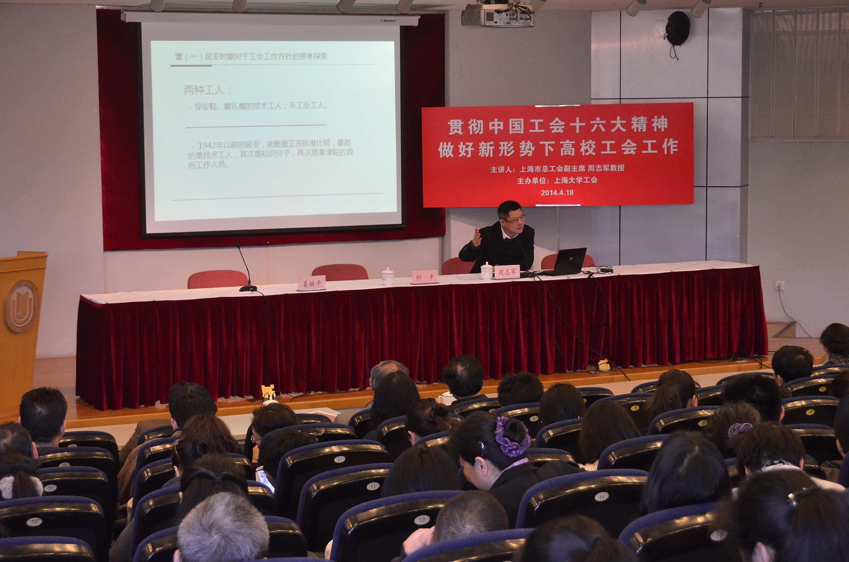 周志军同志先后在华东师范大学获得哲学硕士、博士学位,具有扎实的理论功底;他长期从事工会理论研究,是工会专家型领导;此外,他的党群工作经验尤其是党群领导工作经验很丰富。这些经历,使得这场报告既充满了大量、鲜活的信息和案例,又具有较强的理论深度;既有对工会历史的追溯,又有横向中西方工会的对比分析,引人深思,给人启发。