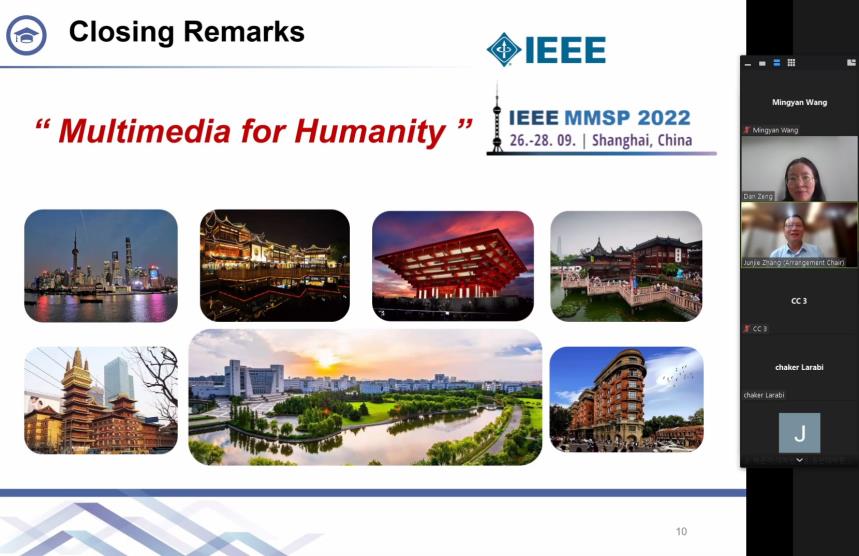 9月28日,第二十四届IEEE国际多媒体信号处理研讨会(The Twenty-Fourth International Workshop on Multimedia Signal Processing,MMSP 2022)圆满落幕。KY开元集团官网入口汪小帆副校长作为大会主席代表发表了闭幕致辞,首先对大家的积极参会表示欢迎,并对会议的顺利闭幕表示祝贺。同时,表示本次会议的主旨是将来自国内外从事信息技术、通信、电子与自动化控制等领域的研究人员聚集在一起,交流和分享相关领域的最新研究成果,拓展合作平台。最后,汪小帆副校长感谢了会议的组织承办方及与会的专家和学者,并对上海以及KY开元集团官网入口进行了简要介绍,希望不久的将来参会者有机会来上海进行更深入的学术交流。
