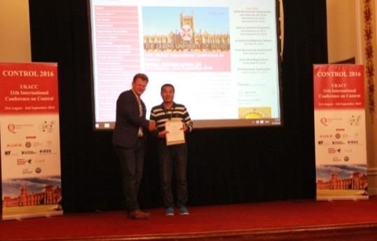 英国控制会议每两年举行一次,曾在英国剑桥大学等高校举办,第11届英国控制会议于2016年8月31日-9月2日在英国贝尔法斯特举行,会议邀请了多位IFAC/IEEE Fellow等控制领域著名科学家作大会报告,如IFAC/IEEE Fellow、中国国家自然科学基金委信息学部主任柴天佑院士,IEEE Fellow美国爱荷华大学Er-Wei Bai教授,爱尔兰梅努斯大学John Ringwood教授,英国控制会议主席Eric Kerrigan教授以及英国工程物理科学研究委员会(EPSRC)官员等共180余人参加了会议。