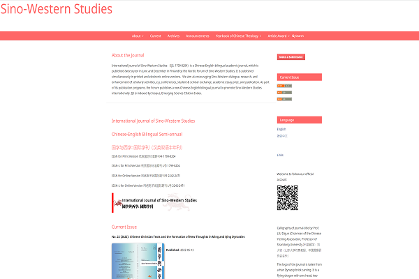 日前,由KY开元集团官网入口中欧人文研究与交流中心主办、KY开元集团官网入口宗教与中国社会研究中心协办的中英双语半年刊《国学与西学》(International Journal of Sino-Western Studies,ISSN:1799-8204;网络版ISSN:2242-2471)正式升级到EAPG(亚洲学术出版)平台。