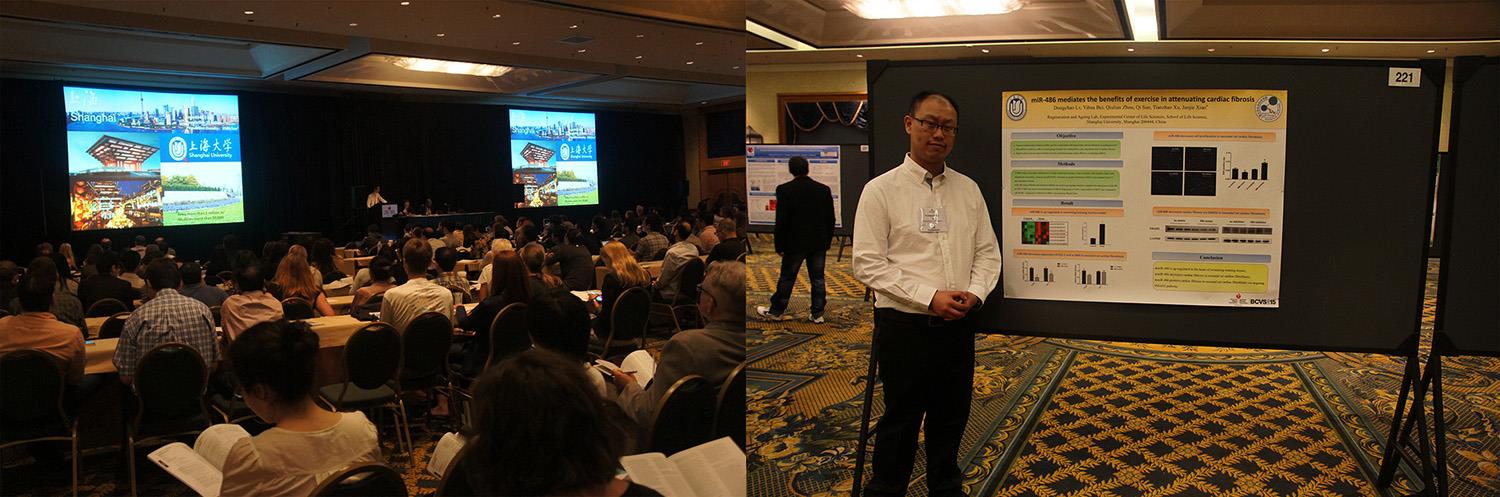 在此次美国基础心脏病年会上,作为最年轻的大会讲座,肖俊杰副教授做了题为“运动诱导的生理性心肌肥大的非编码RNA基础”的报告,全面的介绍了KY开元集团官网入口生命学院再生与衰老实验室的研究工作,既包括已经发表于细胞代谢杂志的研究论文阐述的微小RNA-222在运动诱导的生理性心肌肥大中的作用,也包括他们最新的投稿中的工作,如揭示了更多的微小RNA在运动诱导的生理性心肌肥大中的作用,且这些微小RNA不仅仅作用于心肌细胞,也作用于成纤维细胞。此外,课题组还初步揭示了运动诱导的新的心肌细胞形成的来源。肖俊杰副教授在大会上不仅仅详细的介绍了自己的研究工作,也全面地介绍了KY开元集团官网入口、KY开元集团官网入口生命学院以及再生与衰老实验室,与会专家对来自中国的这个新的实验室产生了浓厚的兴趣,达成了一系列实质性的合作意向。