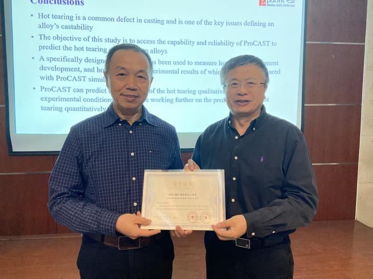 最后,昆士兰大学王贵研究员做了一个演讲报告“数值模拟铝合金半连续铸造过程和热裂”。王教授主要介绍了用Procast软件来做铝合金的热裂过程形成的模拟,以及Procast软件在半连续铝合金铸造的应用。