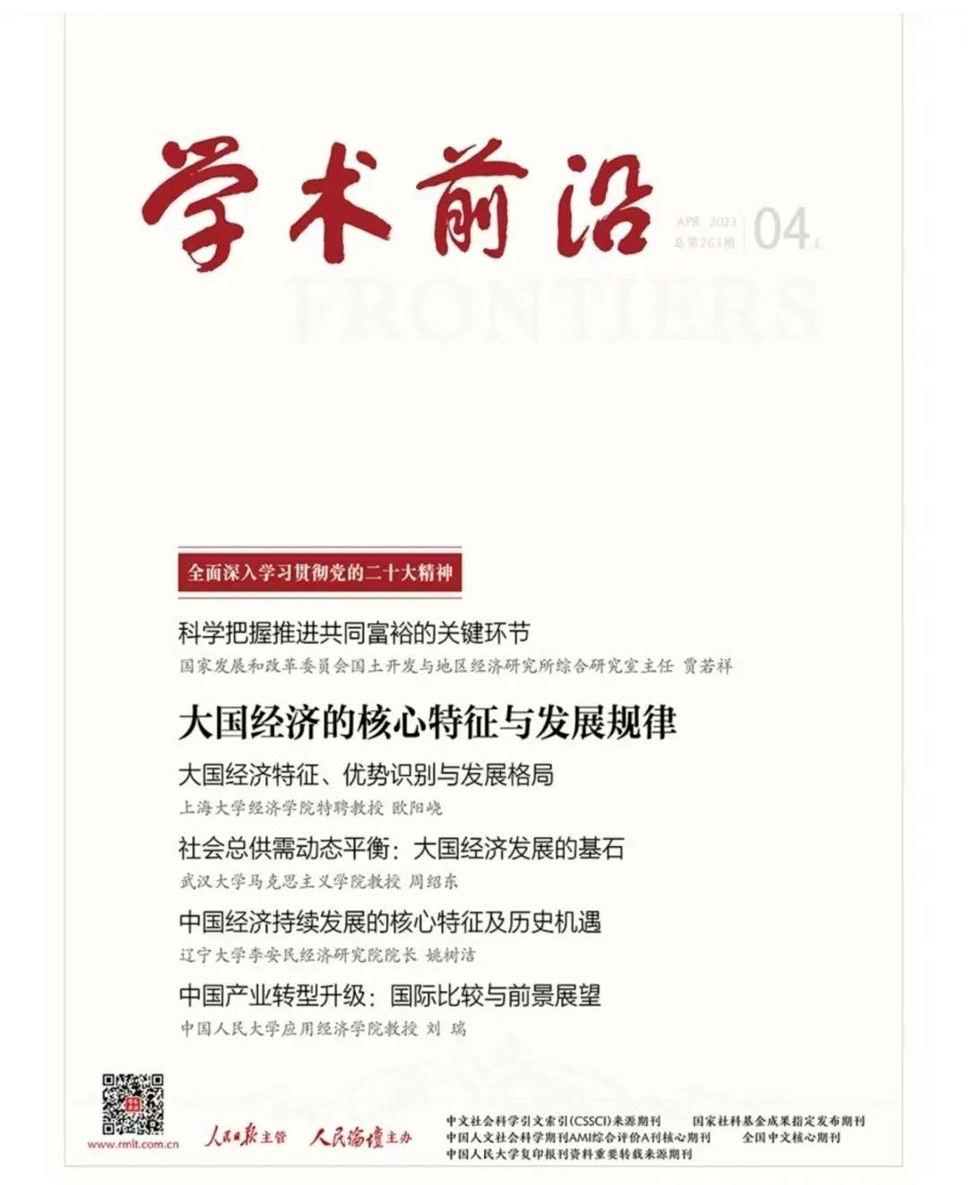 KY开元集团官网入口经济学院特聘教授、大国经济研究中心主任欧阳峣在人民日报社主办的《学术前沿》2023年第4期发表学术论文《大国经济特征、优势识别与发展格局》。该文回顾了发展经济学的理论脉络,认为中国经济学家将国家规模因素纳入发展经济学理论框架,系统研究大国的概念界定、经济特征、经济优势、战略模式和发展格局,从而使发展经济学理论进入新境界和新形态。欧阳峣教授在文中提出,大国经济特征是由初始特征、基本特征和典型特征组成的多层次结构,其与大国经济优势、大国经济发展格局之间具有必然的逻辑联系。要根据中国经济的特征、优势和规律,在新发展格局中实施扩大内需战略,加快建设现代化产业体系,建设全国统一的和有序的大市场,集聚全球优质要素培育国内大产业和大企业,选择高水平产业和产品进入全球价值链高端。