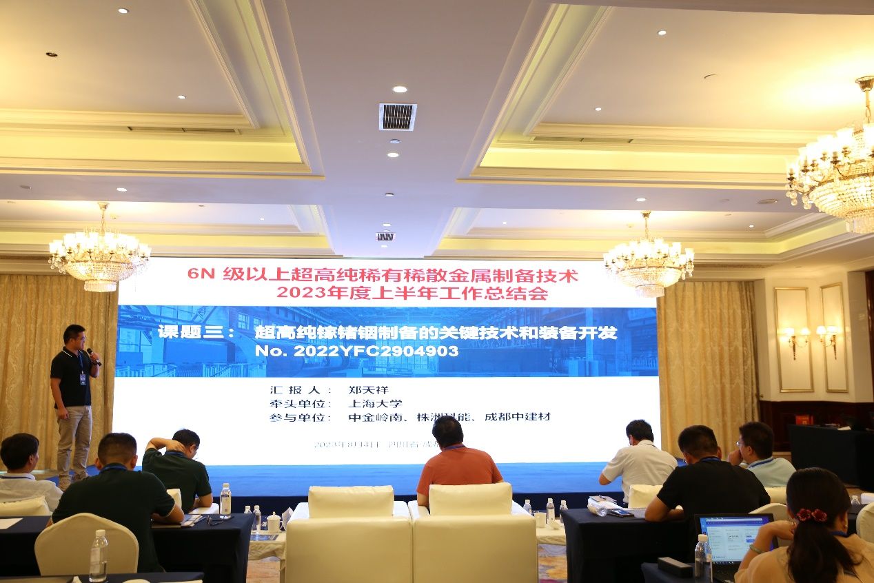 8月4日上午,“十四五”国家重点研发计划“战略性矿产资源开发利用”专项“6N级以上超高纯稀有稀散金属制备技术”项目2023年度上半年工作总结会在四川成都顺利召开,此次大会由成都中建材光电材料有限公司主办。该项目负责人为KY开元集团官网入口钟云波教授,依托单位为郑州大学;与KY开元集团官网入口、昆明理工大学、浙江工业大学、中南大学、成都中建材光电材料有限公司、深圳市中金岭南有色金属股份有限公司、株洲科能新材料股份有限公司、湖南博云新材料股份有限公司等八家单位共同承担。项目负责人KY开元集团官网入口钟云波教授、郑州大学副校长赵中伟教授、成都中建材总经理潘锦功博士以及各课题负责人、子课题负责人与项目成员等50余人参加了本次会议。大会由成都中建材光电材料有限公司总经理助理郑林博士主持并致欢迎词。