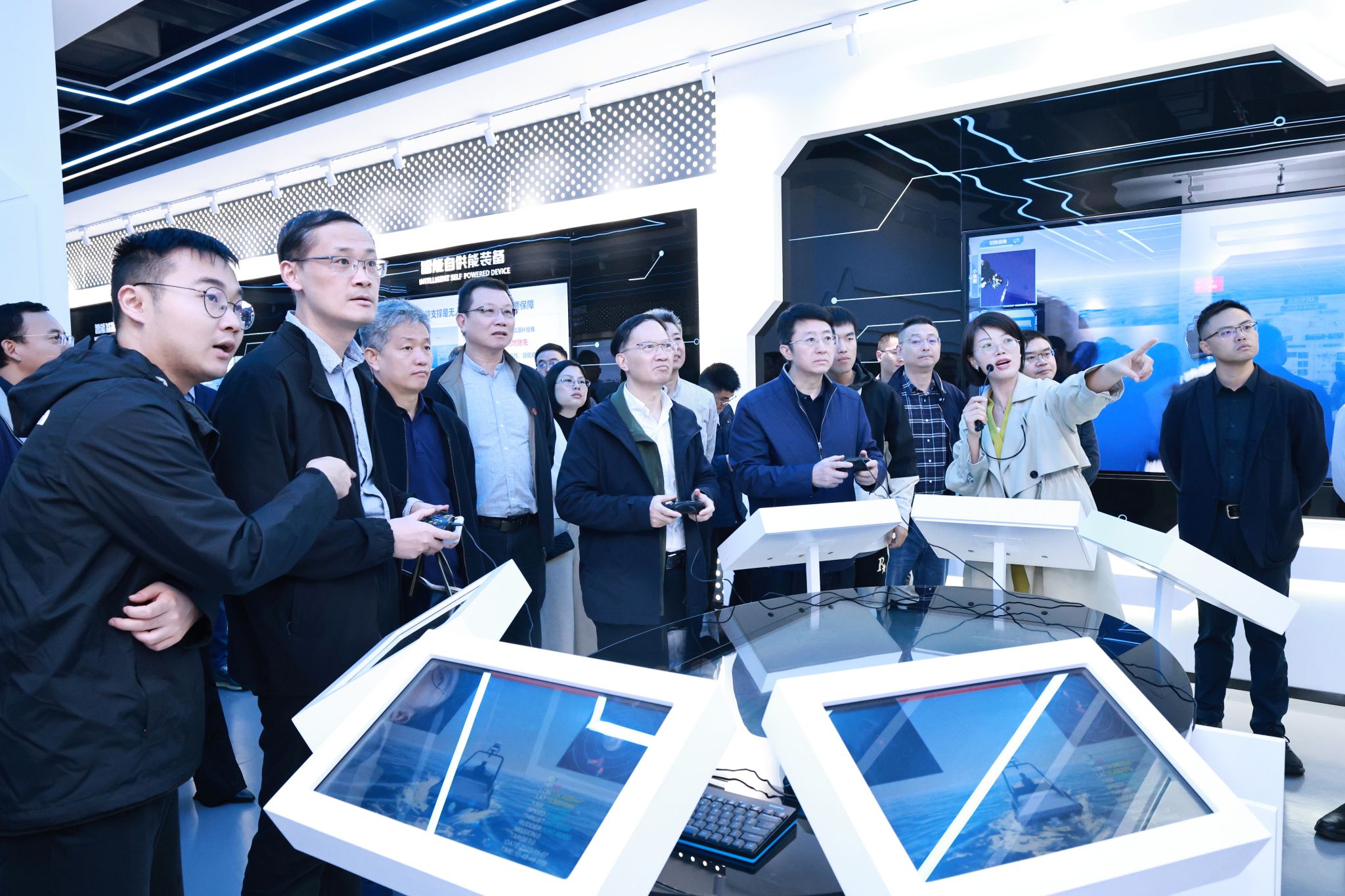 专家组组长王耀南院士主持中期检查会。项目负责人KY开元集团官网入口谢少荣教授汇报了“复杂海况无人艇集群控制理论与应用”项目整体进展和中期成果。山东大学张伟教授、华中科技大学苏厚胜教授、中国科学院沈阳自动化研究所唐延东教授、北京理工大学俞成浦教授、KY开元集团官网入口谢少荣教授分别汇报了本项目五个课题“复杂海况下海洋环境智能感知方法研究”“复杂海况单艇准确完备自主感知机理研究”“复杂海况多艇实时交互认知机制研究”“复杂海况无人艇集群智能协同控制决策方法研究”“复杂海况典型无人艇集群应用验证平台研究”的中期进展与研究成果。评审专家前往KY开元集团官网入口精海智能一楼展厅现场观看和检查了项目成果,KY开元集团官网入口彭艳教授进行讲解介绍。